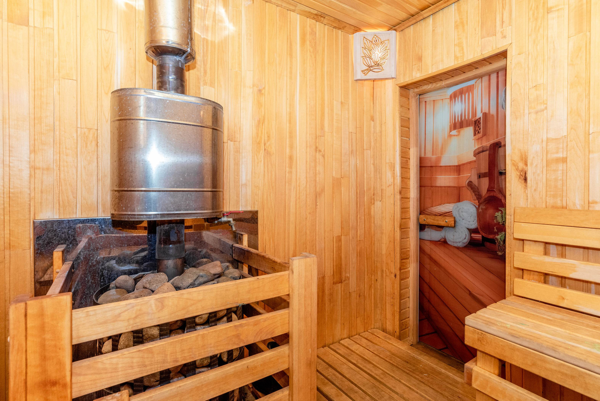 Дом после капитального ремонта, утеплен, обшит, перестелена крыша, внутри сделан хороший ремонт в светлых тонах, окна пластиковые новые, заменены все двери, сделано много чего по улучшению . Водопровод от скважины, проведен как в дом,так и в баню. Проведён интернет(wi-fi) и тв. На улице рядом с баней большой крытый бассейн.