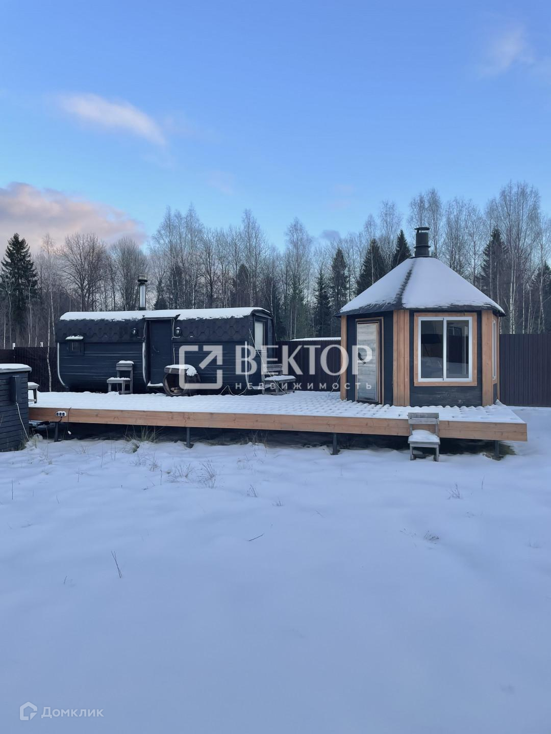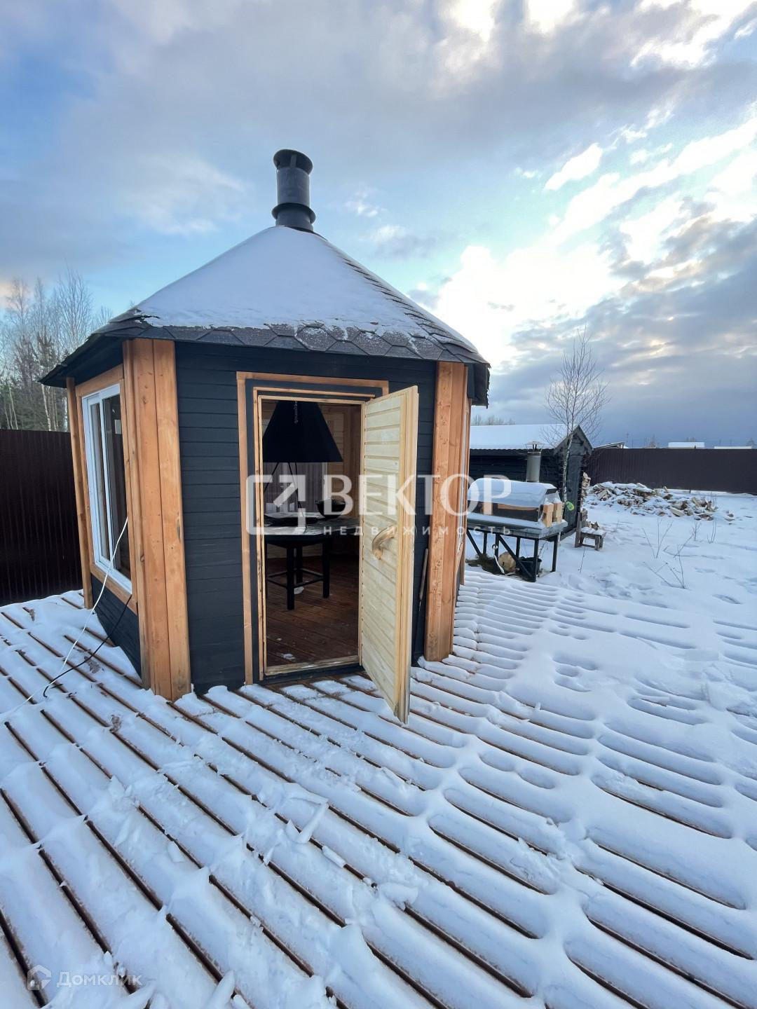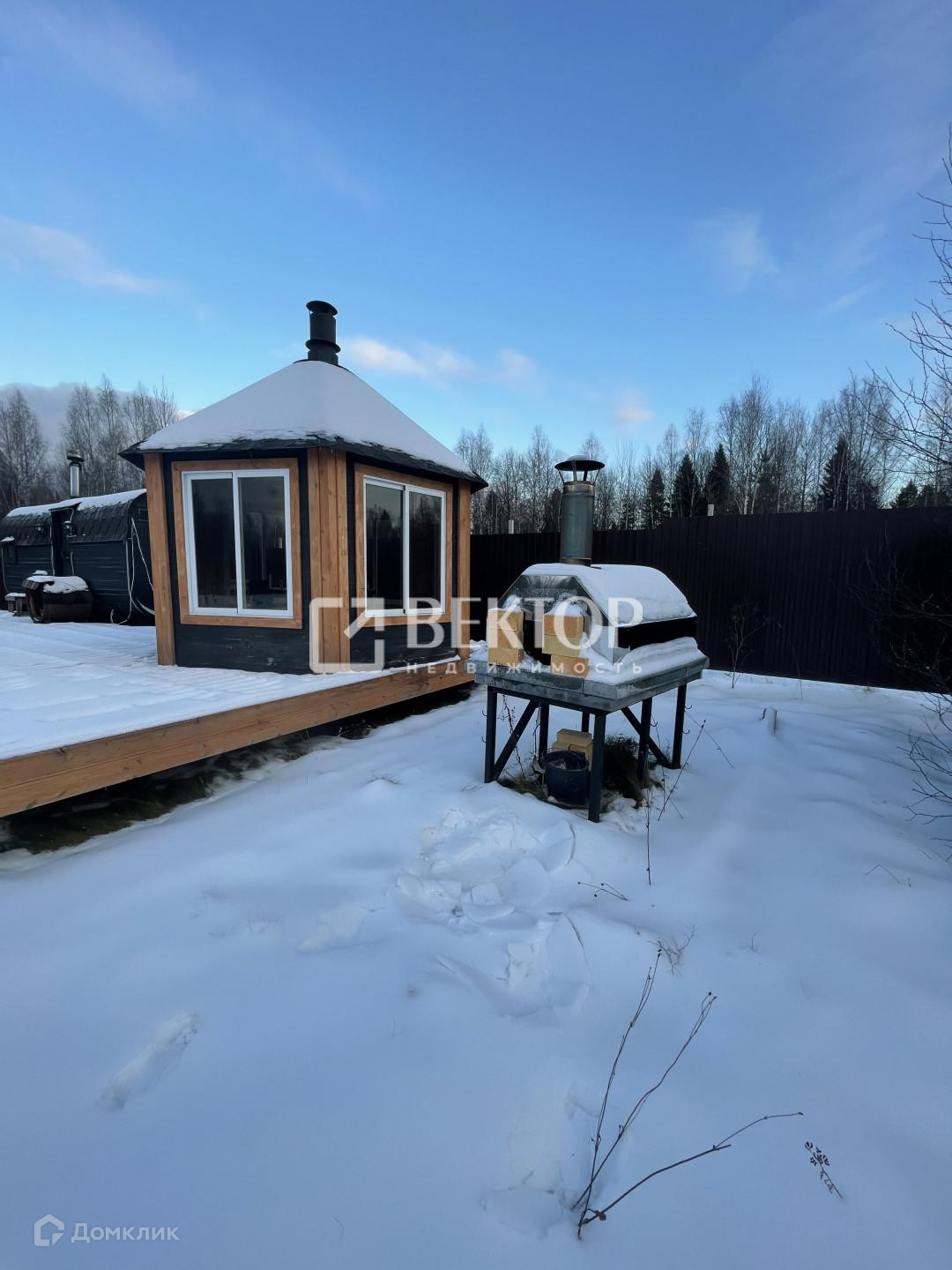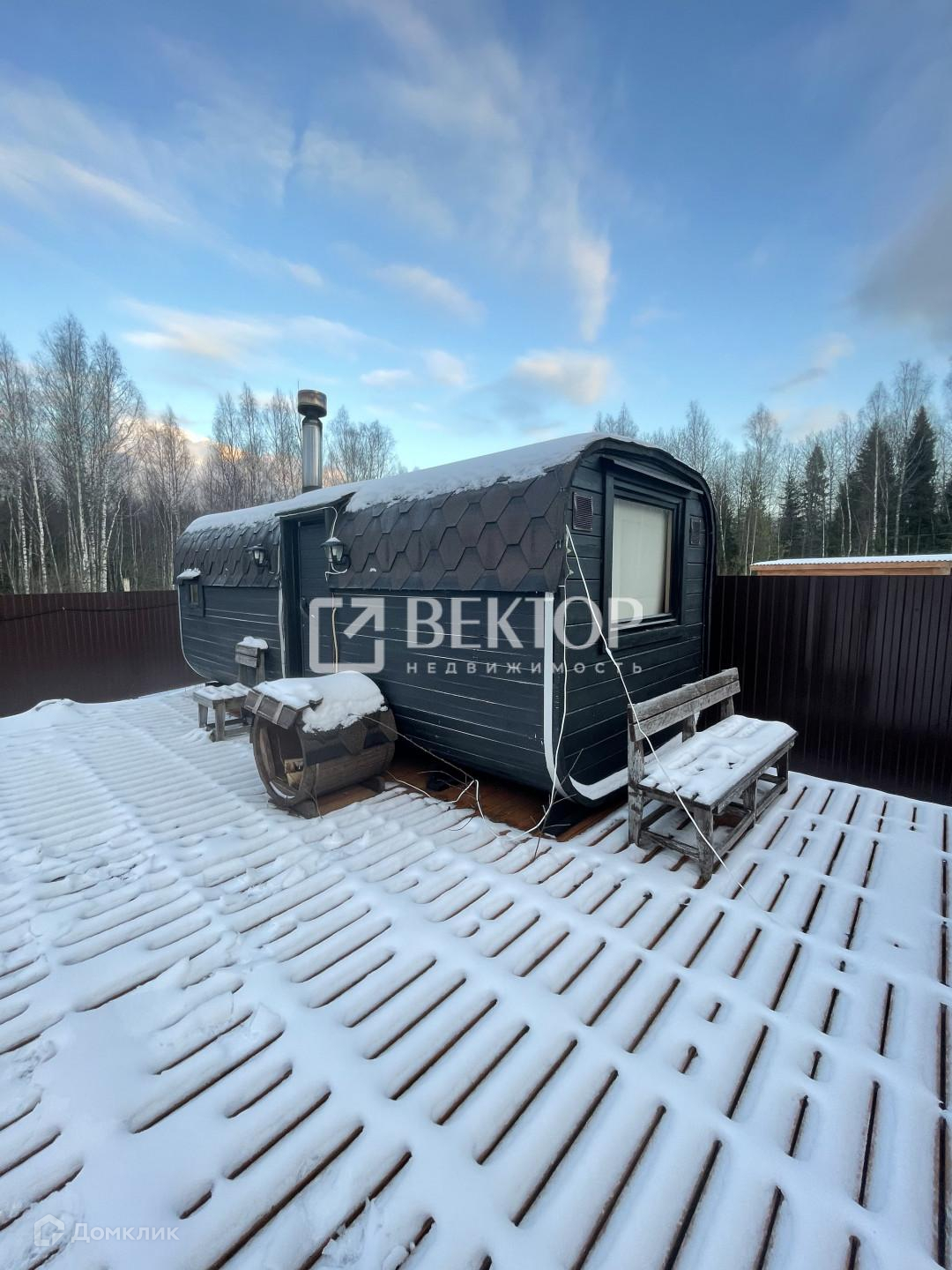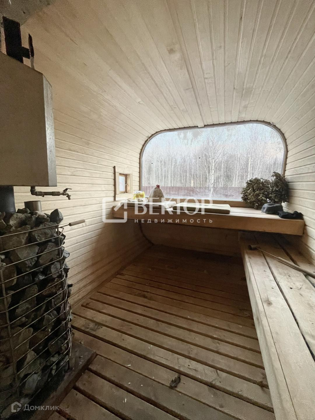 На территории участка установлена 6 метровая утепленная баня бочка с панорамным окном в парилке и большим окном в комнате отдыха, Установлена печь с двумя каменками ,что дает 2 вида пара.