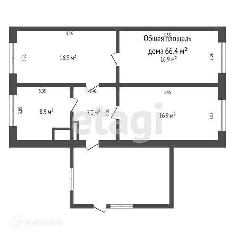 Общая площадь 66.4 м2