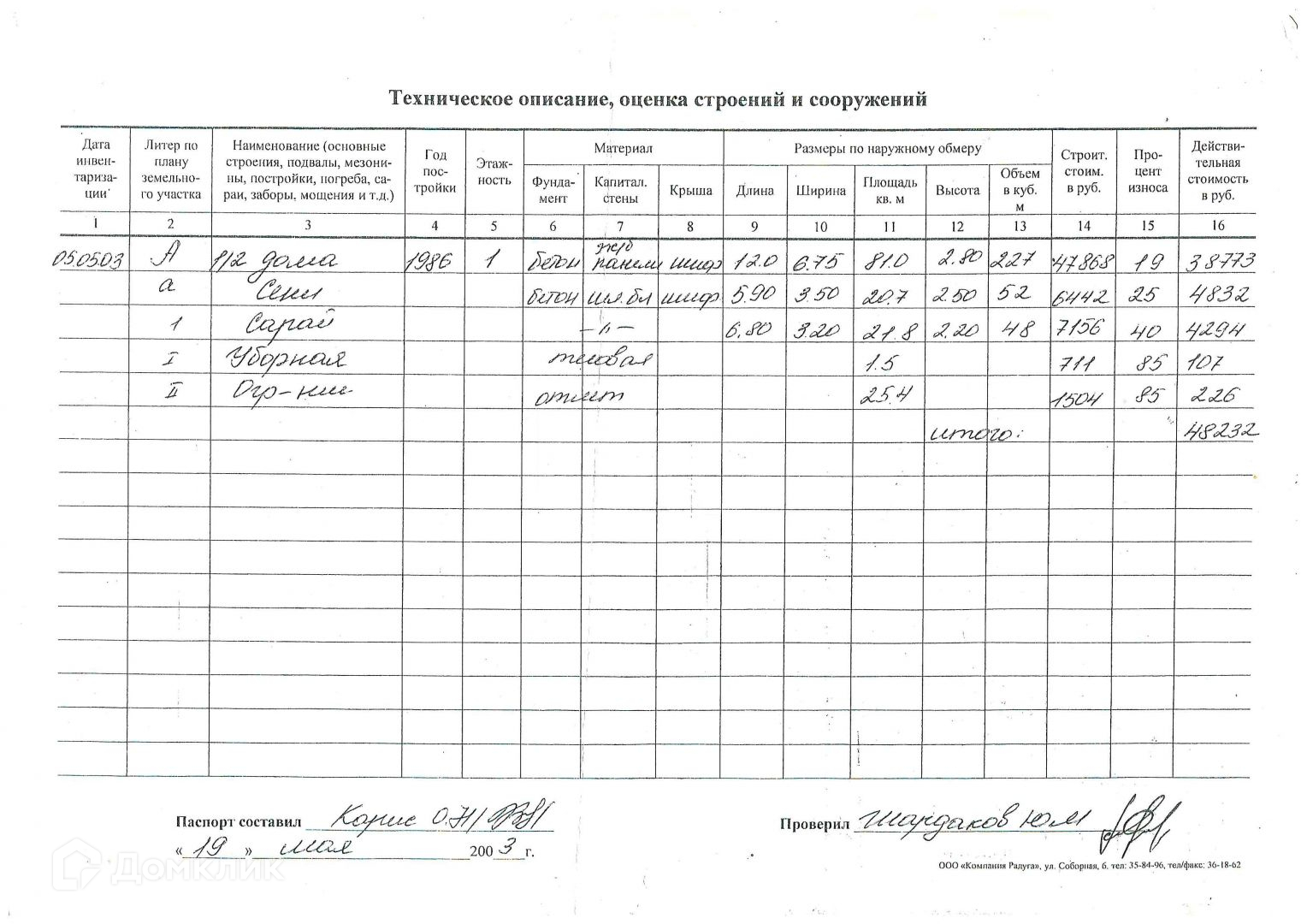 Стоимость недвижимости: