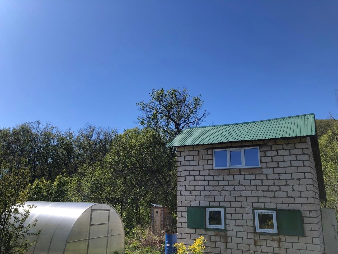 дача находится в живописном месте, рядом протекает речка