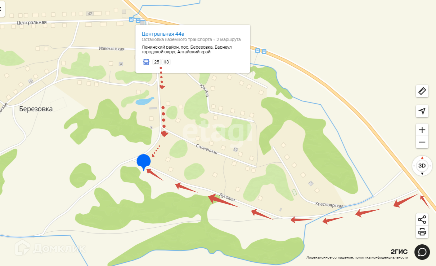 Продам земельный участок 10 соток ИЖС, Барнаул городской округ, Алтайский край, Ленинский район, поселок Березовка, улица Луговая.