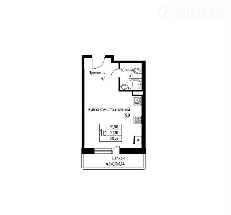 Общая площадь 28.7 м2