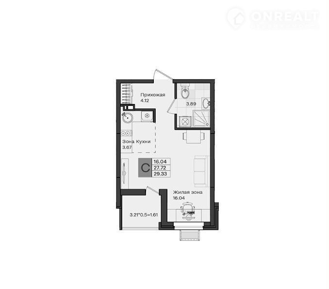 Общая площадь 29.3 м2