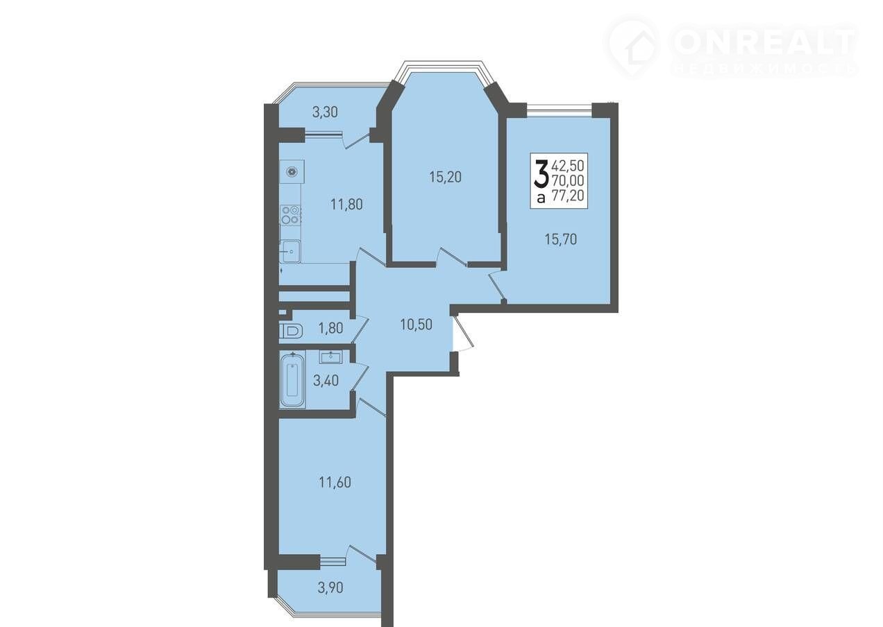 Общая площадь 77.2 м2