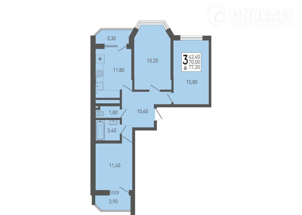 Общая площадь 77.2 м2
