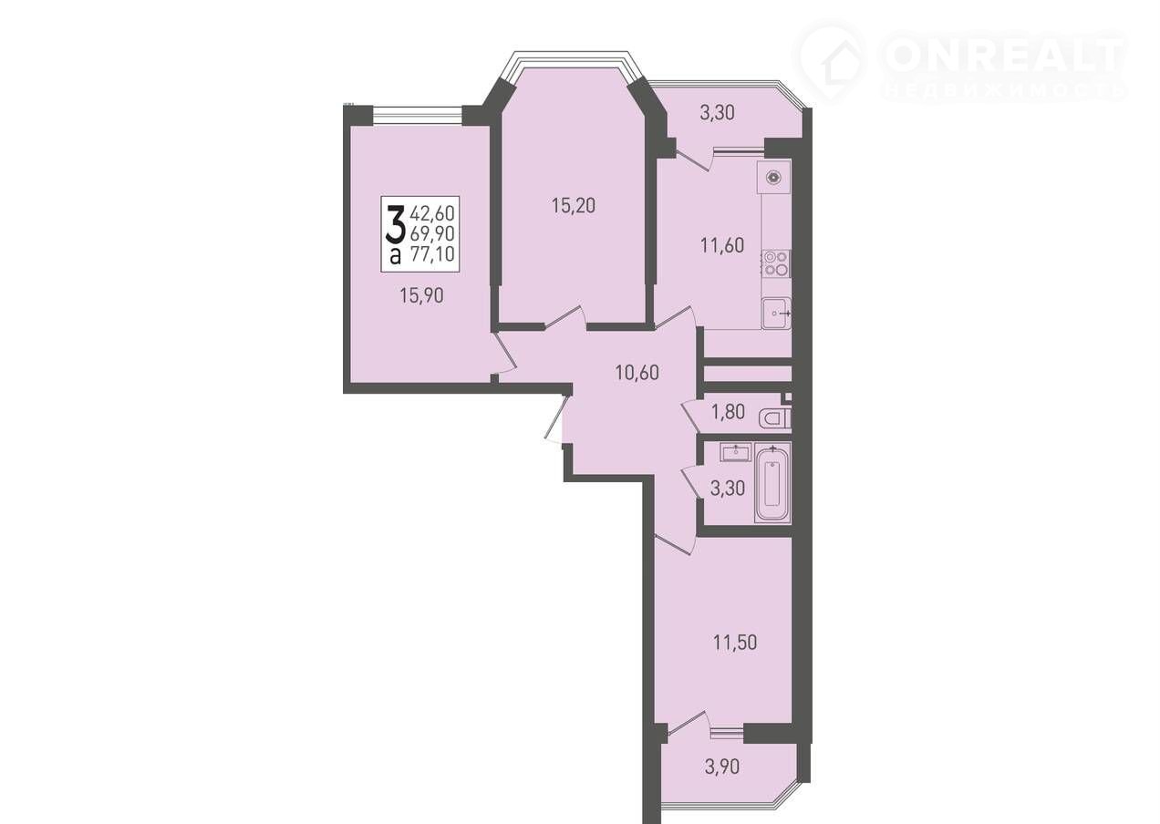 Общая площадь 77.1 м2
