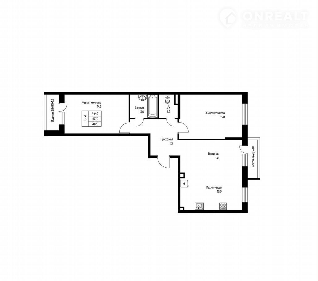 Общая площадь 70.2 м2