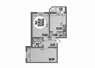 Продается двухкомнатная квартира, 62.1 м2
