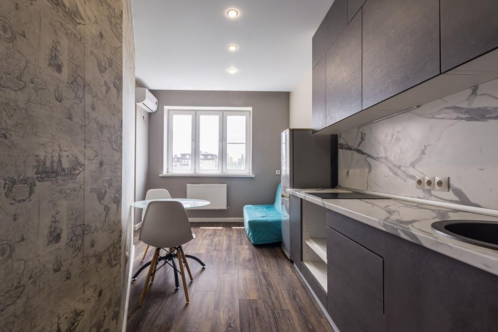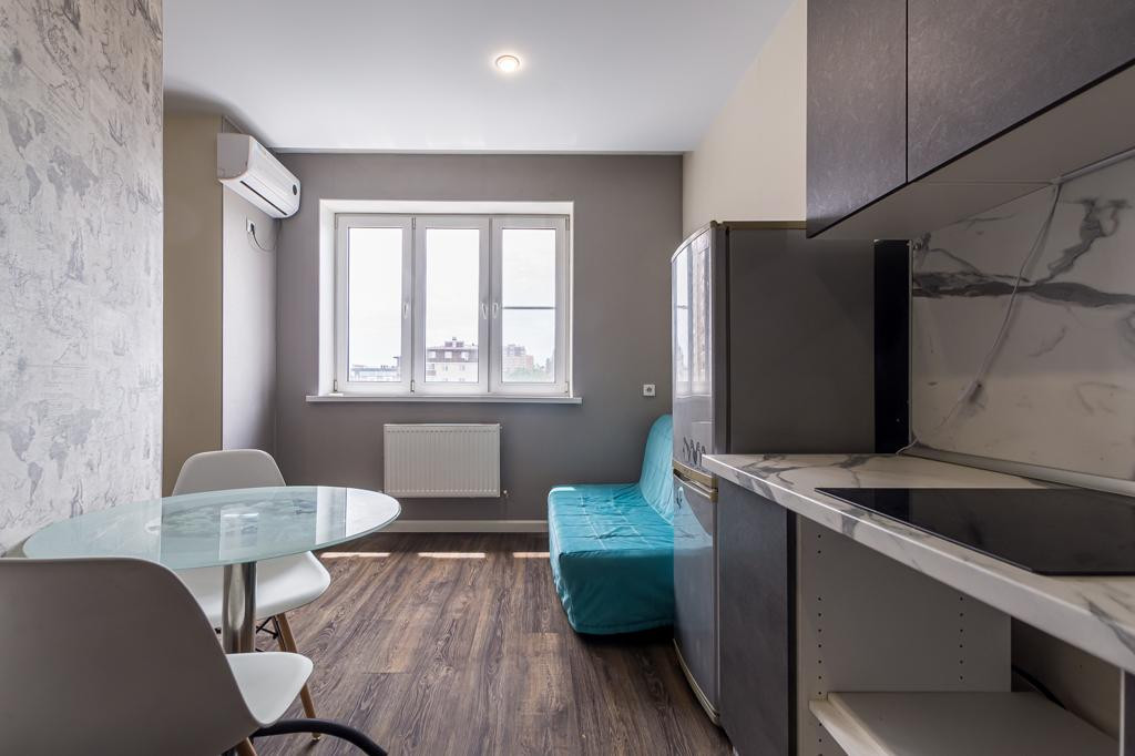 Продается однокомнатная квартира - студия красивым видом на город, ремонт был сделан в стиле Loft.