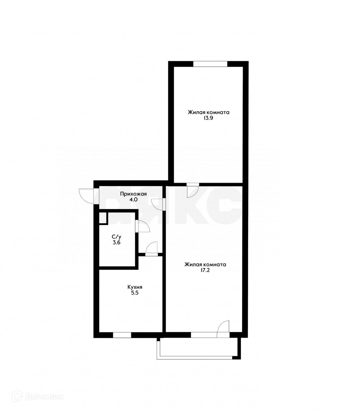 Общая площадь 43.6 м2