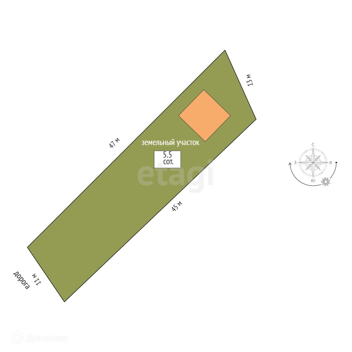 Площадь участка 5.5 сот.