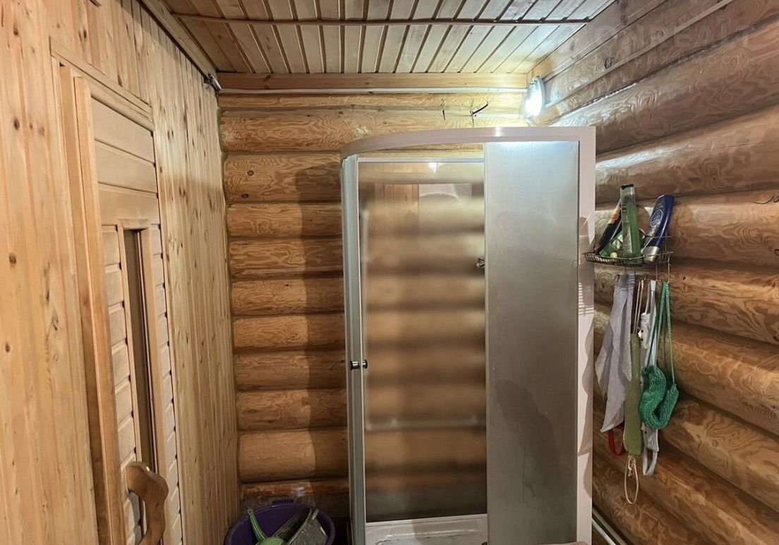1) Большая бревенчатая баня на дровах: