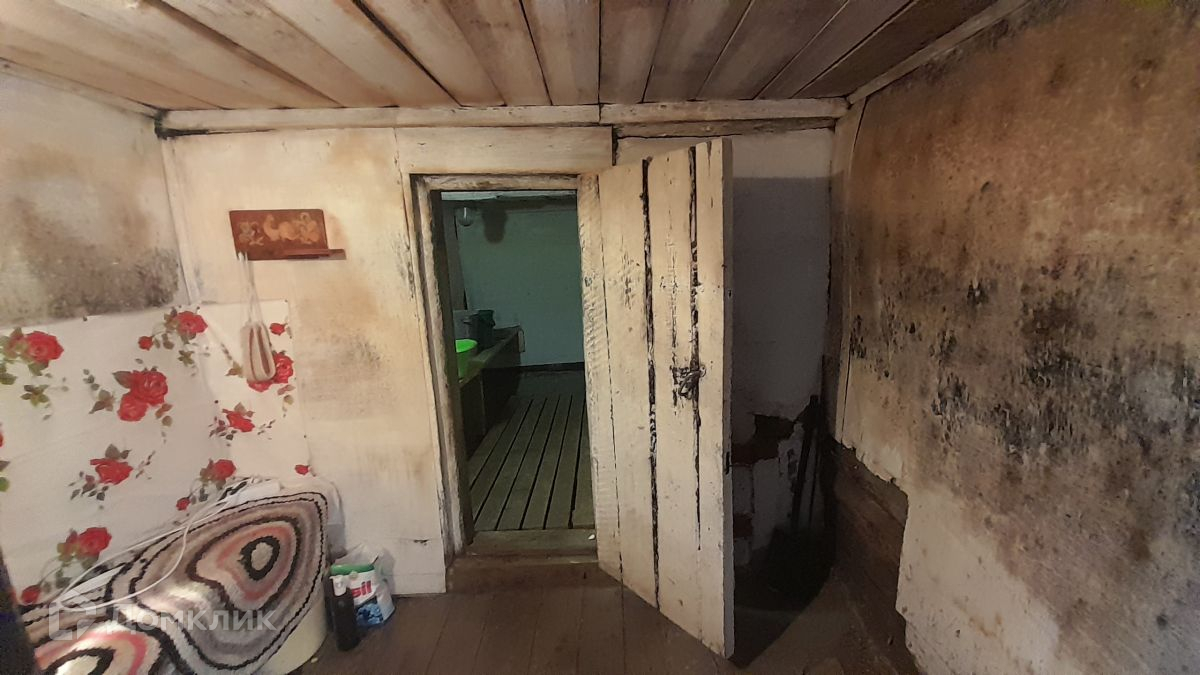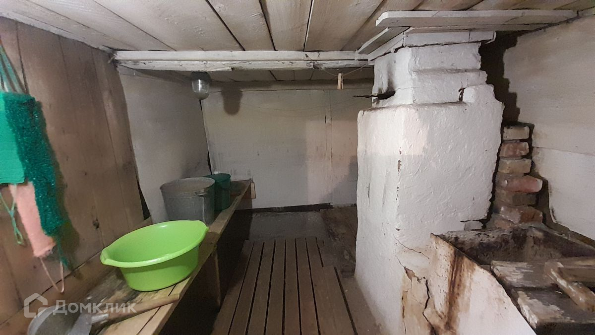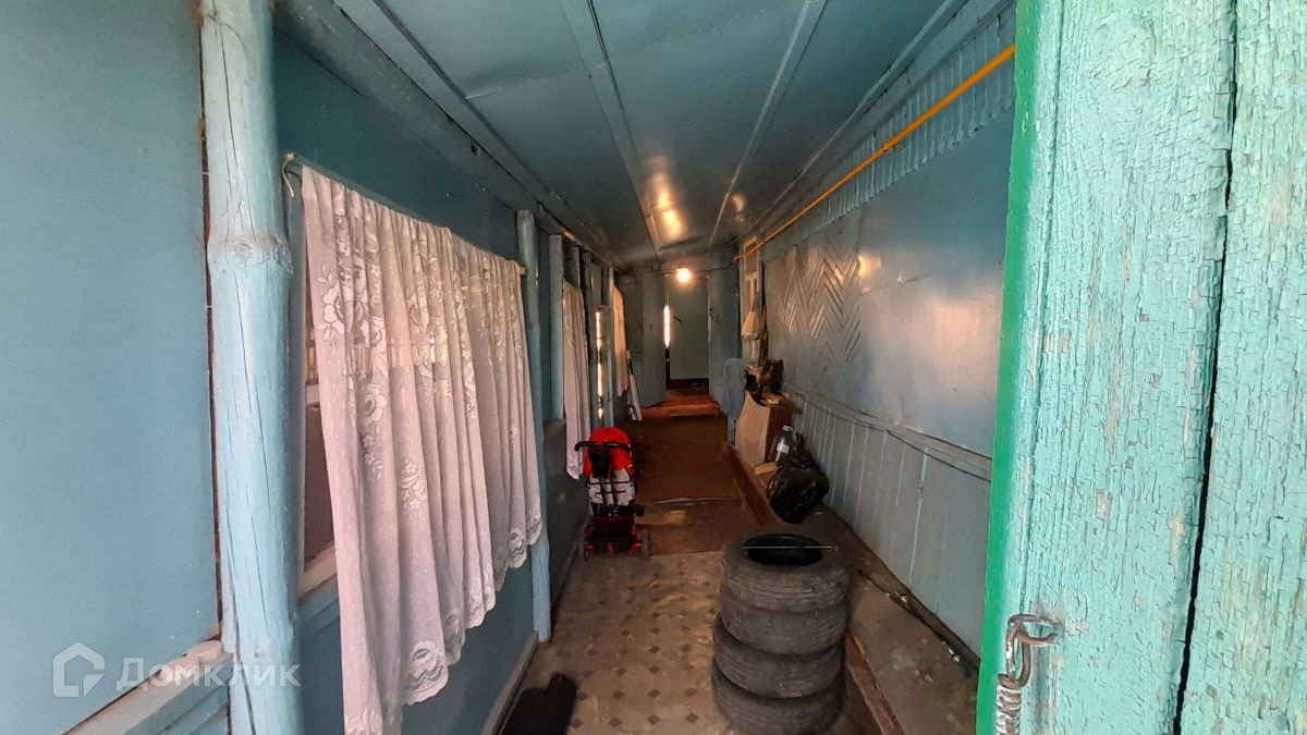 Бревенчатый,общая площадь 56 кв.м., 3 комнаты и кухня, сан.узел в доме, коммуникации: газовое отопление, вода в доме, канализация.
