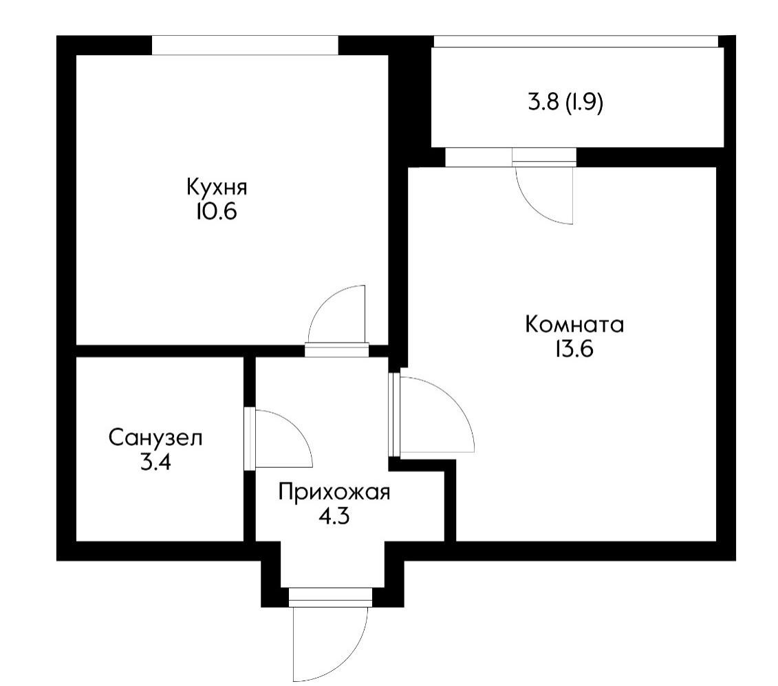 Общая площадь 33.8 м2