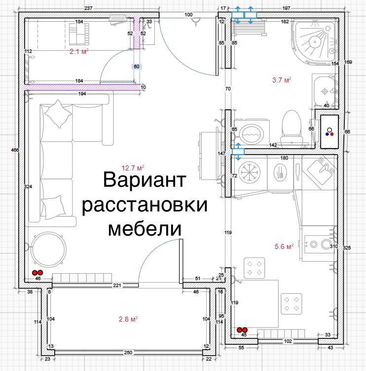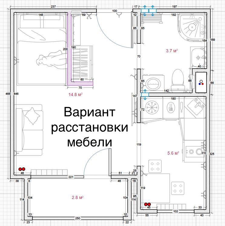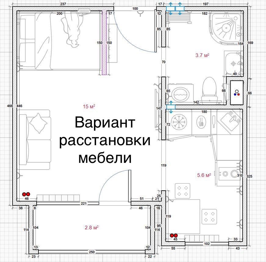 Высота потолков 2.6 м