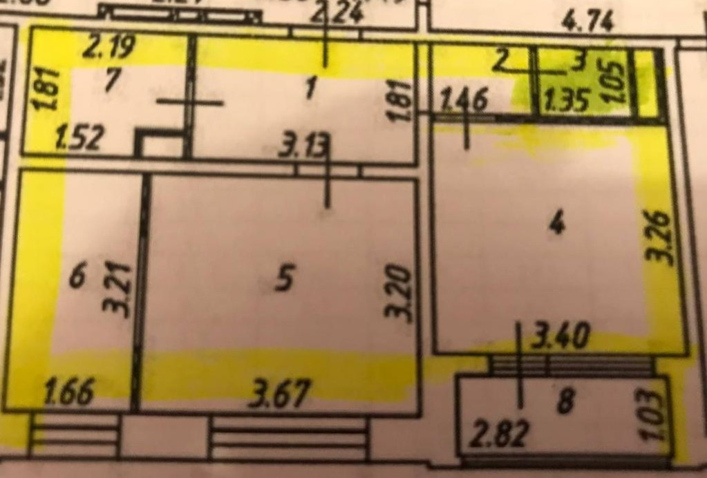 Жилая площадь 22.9 м2