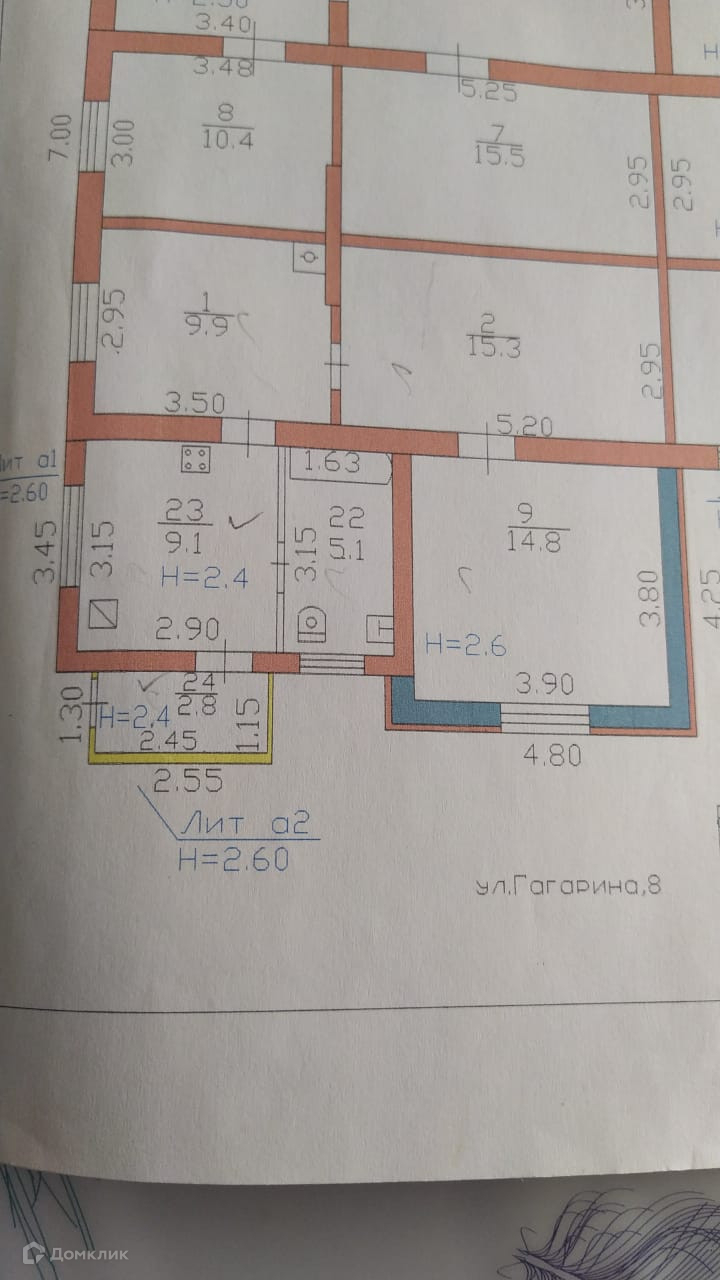 В доме две изолированных комнаты и одна смежная 14, 8 кв. м, 15,3 кв. м, и 9,9 кв. м.