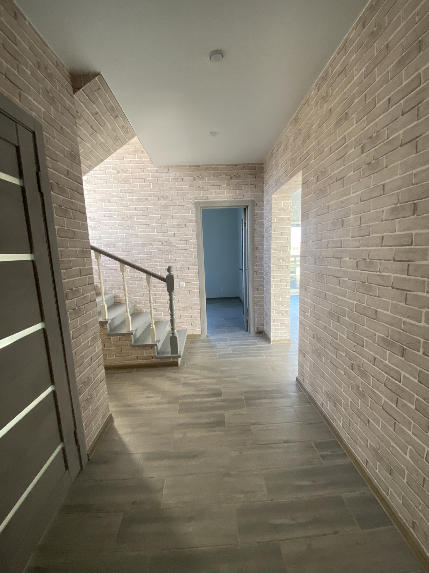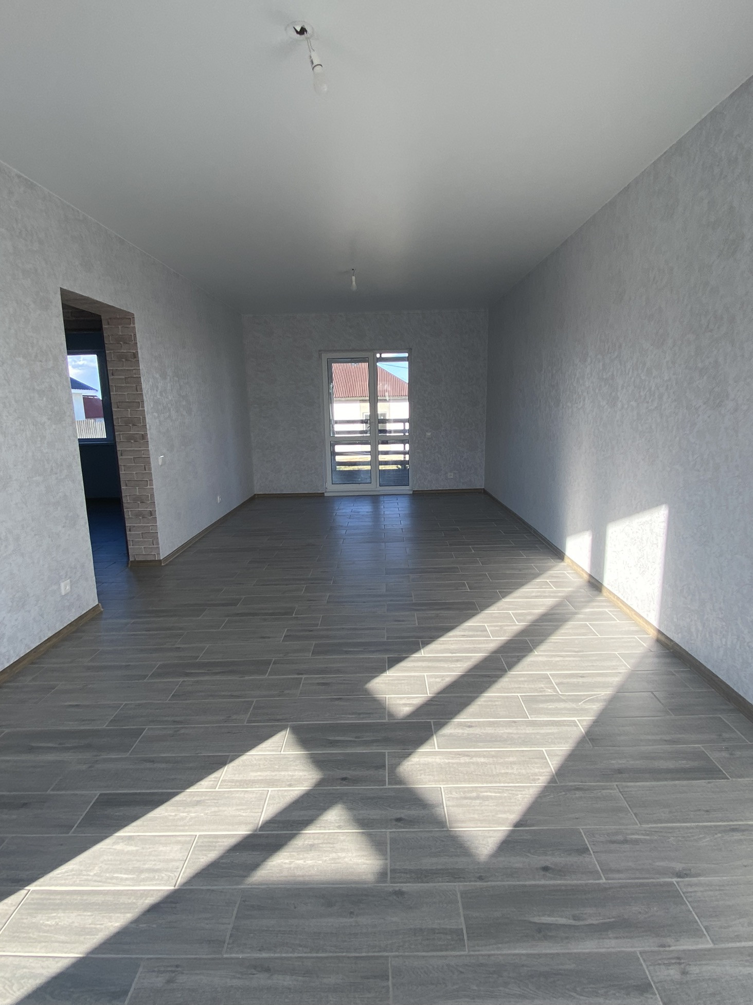 - Пол - ламинат в комнатах, в остальных помещениях - керамогранит;