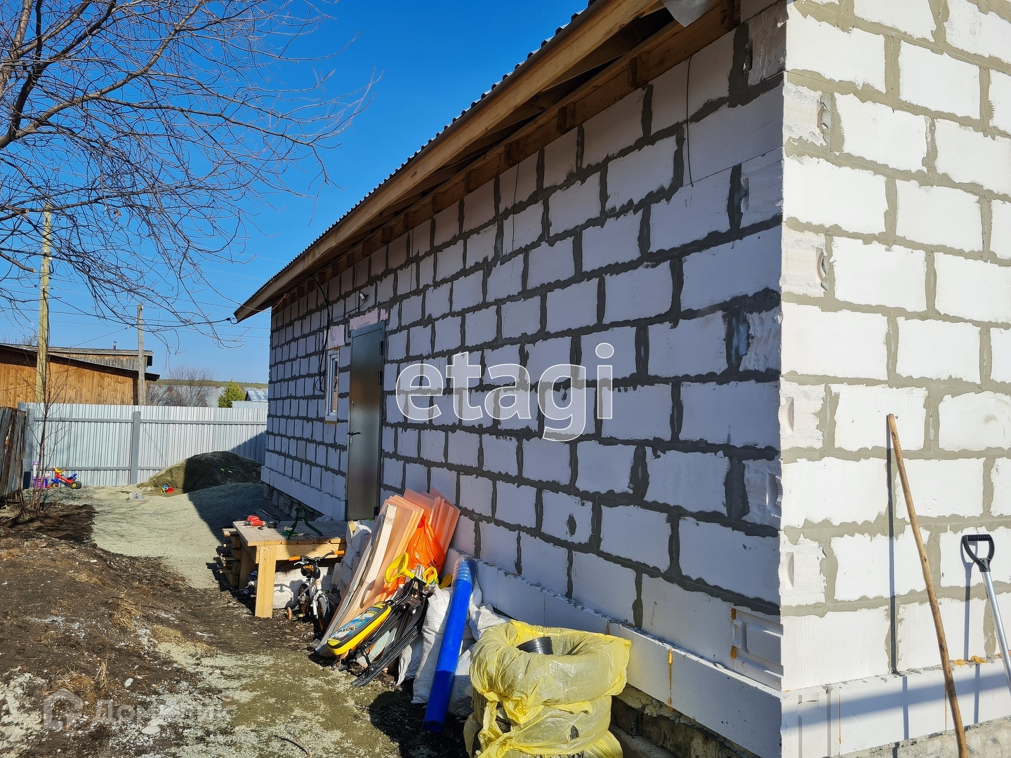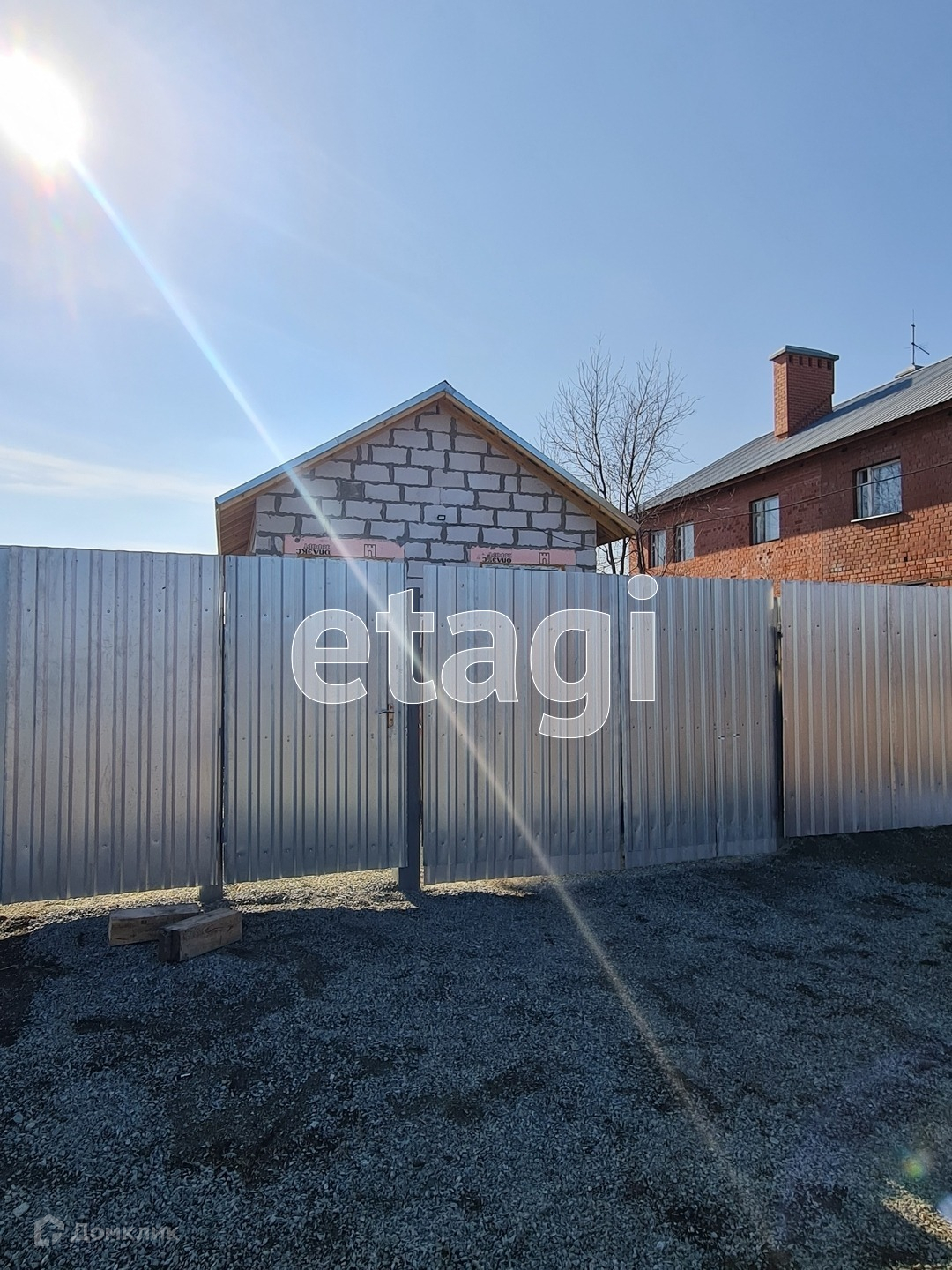 Въезд к дому и двор отсыпаны мелким щебнем.
