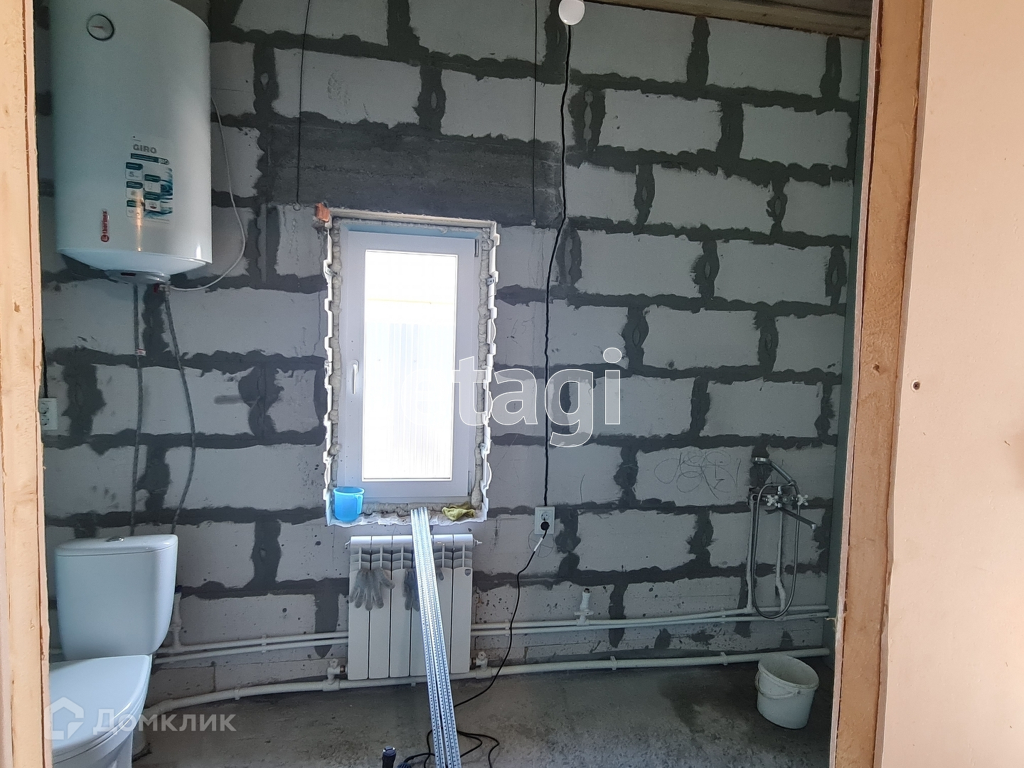 Произведена полная разводка электричества (установлены розетки, выключатели, лампочки). Водоснабжение и канализация разведены в кухню и санузел; канализация - септик (3 кольца по 1,5м.). Запущено резервное электроотопление с итальянскими радиаторами,экономный 9 квт.котел. Внутренняя отделка стен-гипсокартон, на полу ламинат. Современные энергосберегающие окна, входная сейф-дверь шириной - 1 м. В настоящее время продолжаются отделочные работы.