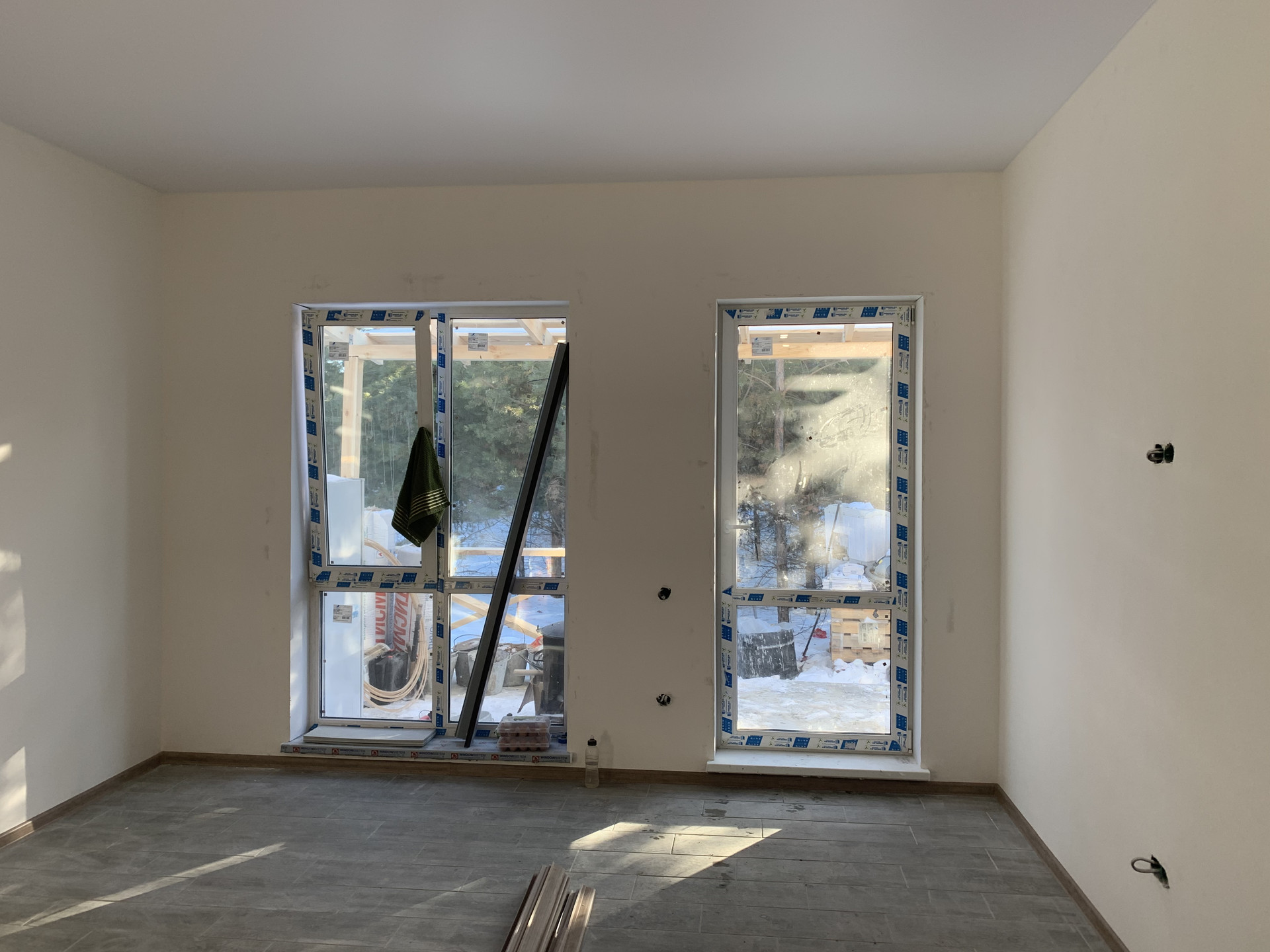 По всему дому смонтированы теплые полы в стяжке.