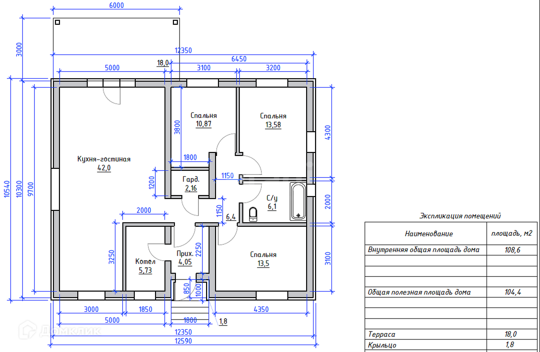 Общая площадь 129 м2