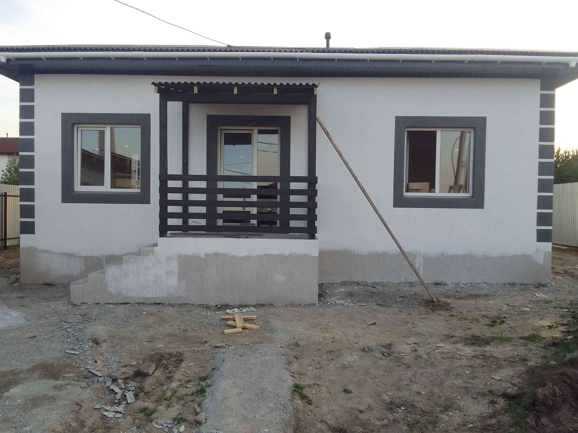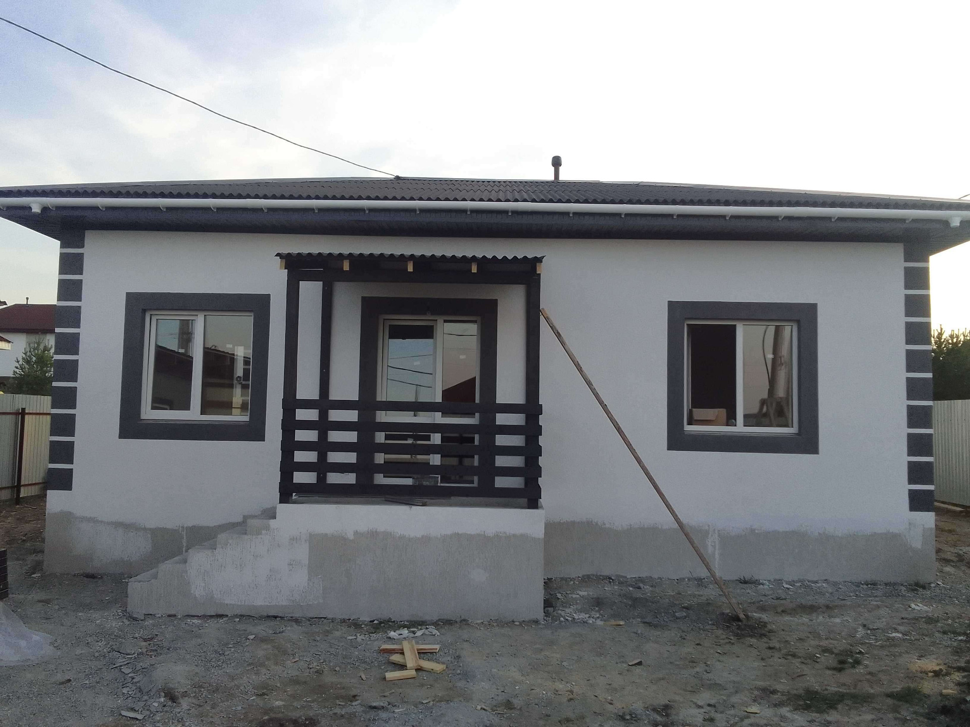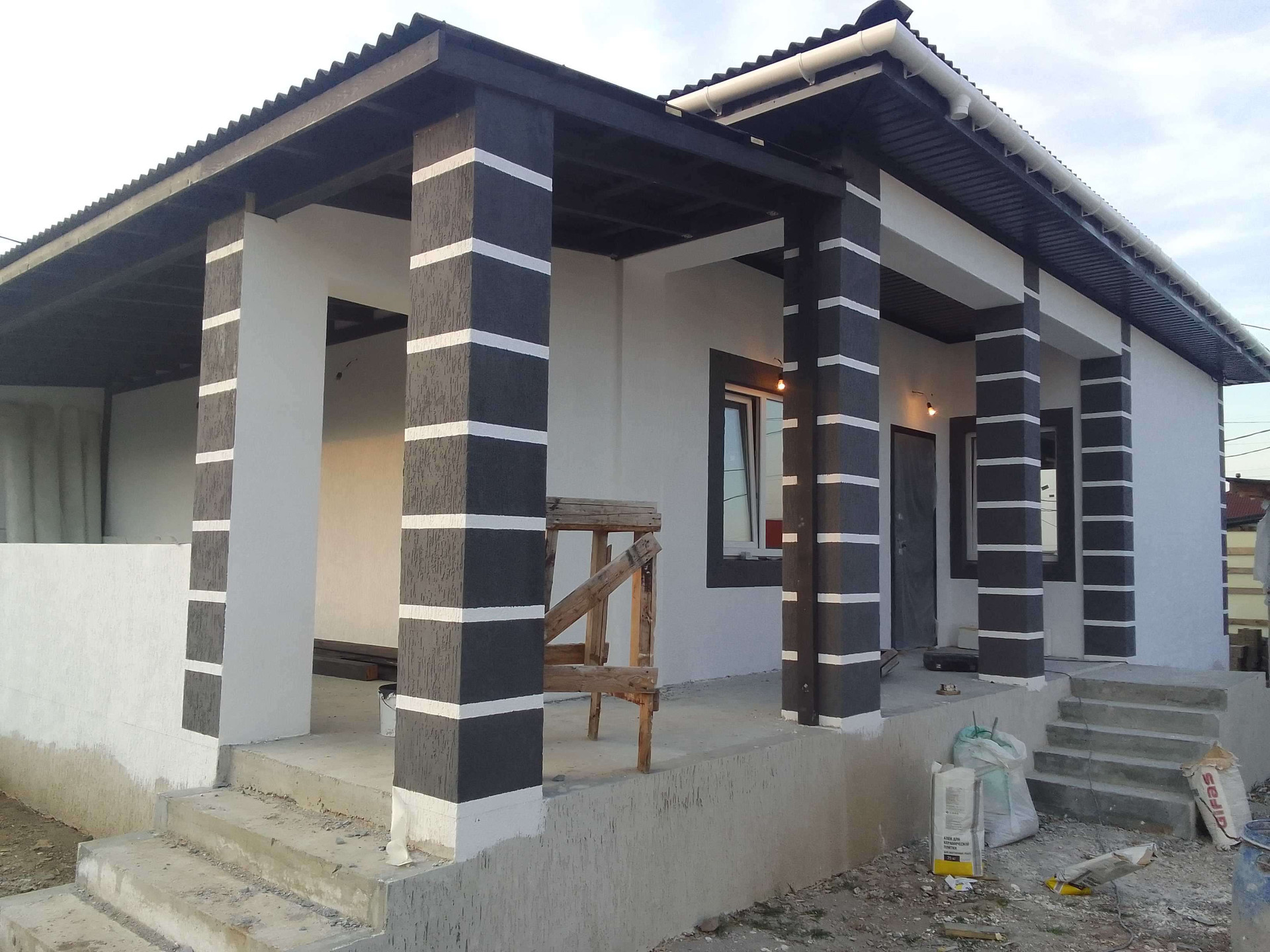 Стены: газоблок 300, фасадный утеплитель, штукатурка -"Короед"