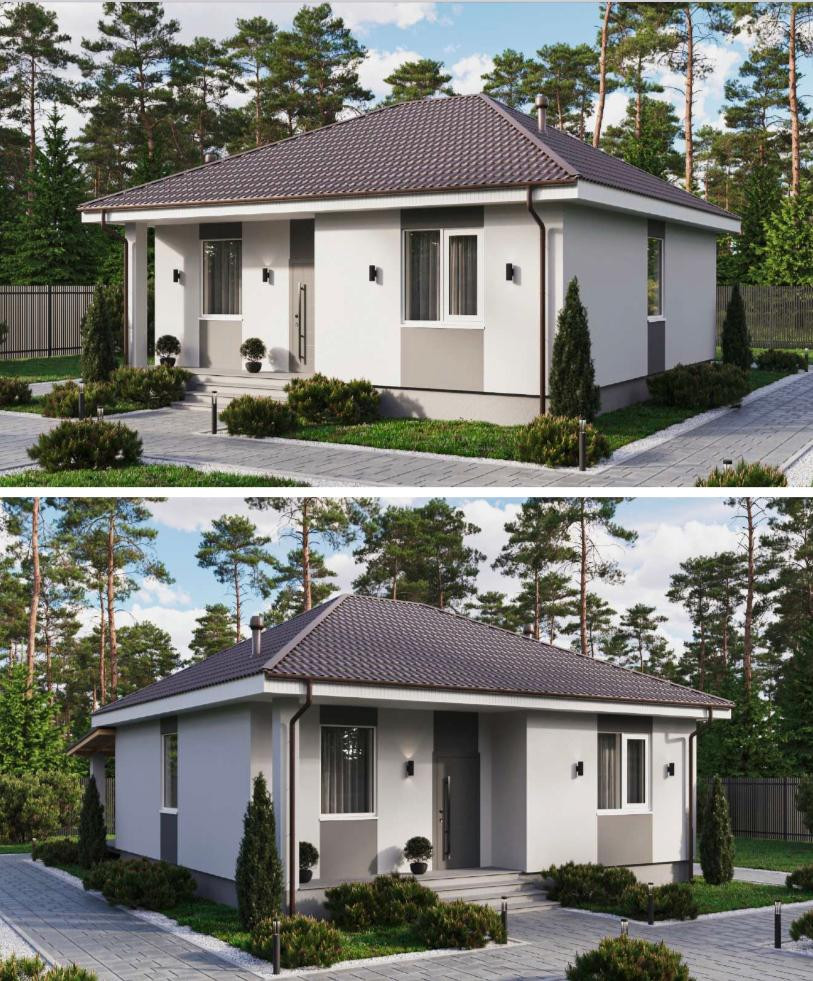 Планировка подходит как для круглогодичного проживания, так и как вариант дома выходного дня. Две спальни, просторная кухня-гостиная с высоким потолком и выходом на террасу, санузел, котельная (+ место второго сан узла).