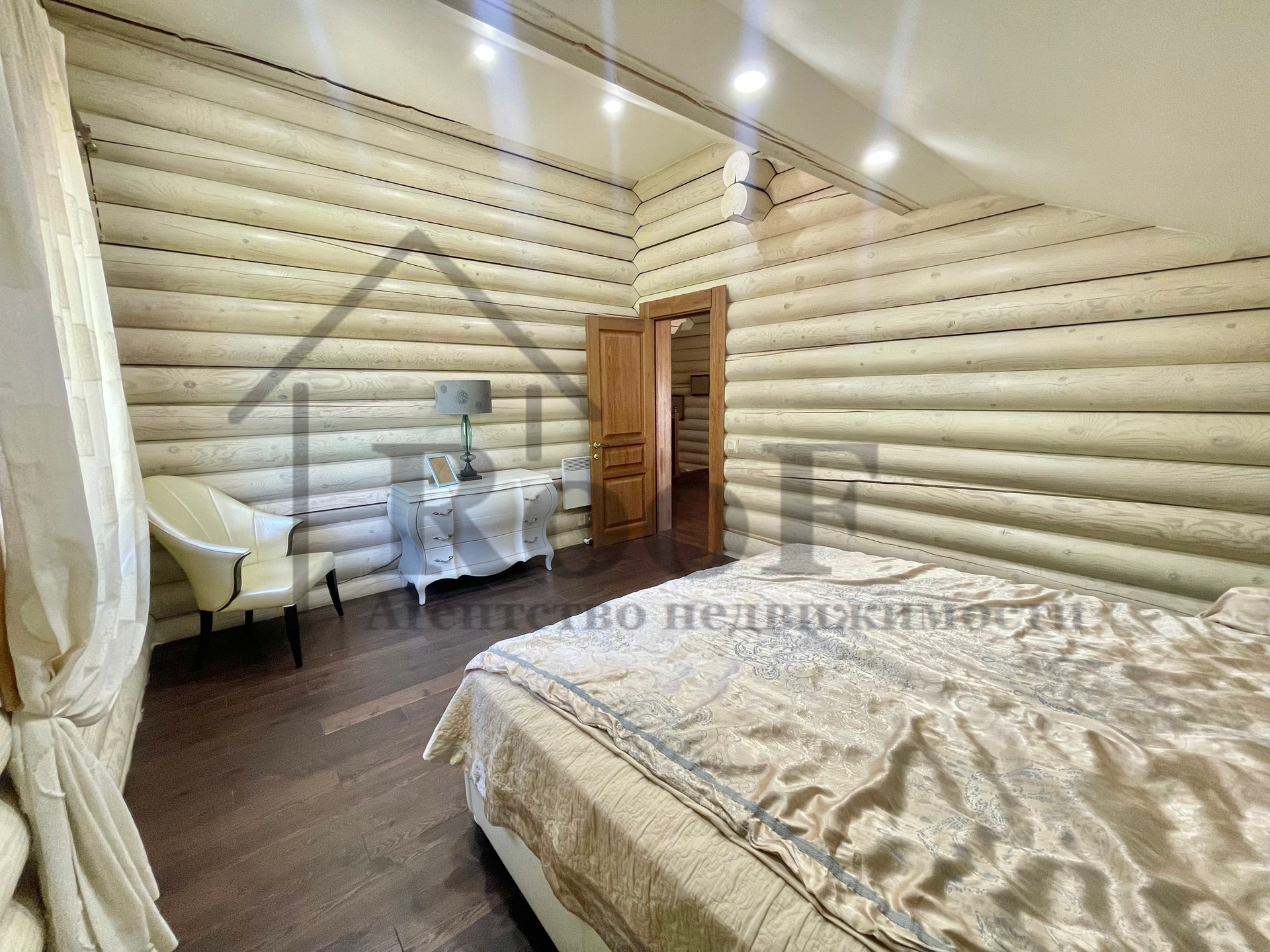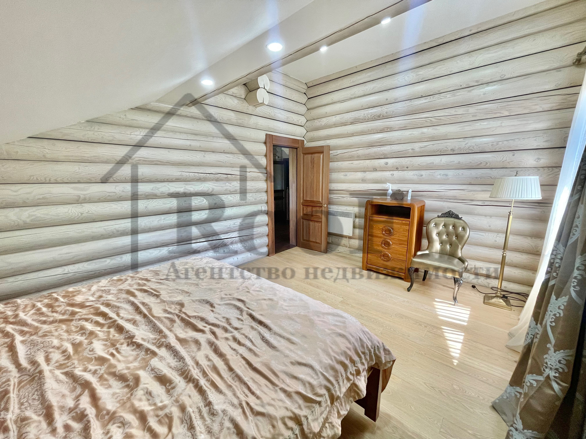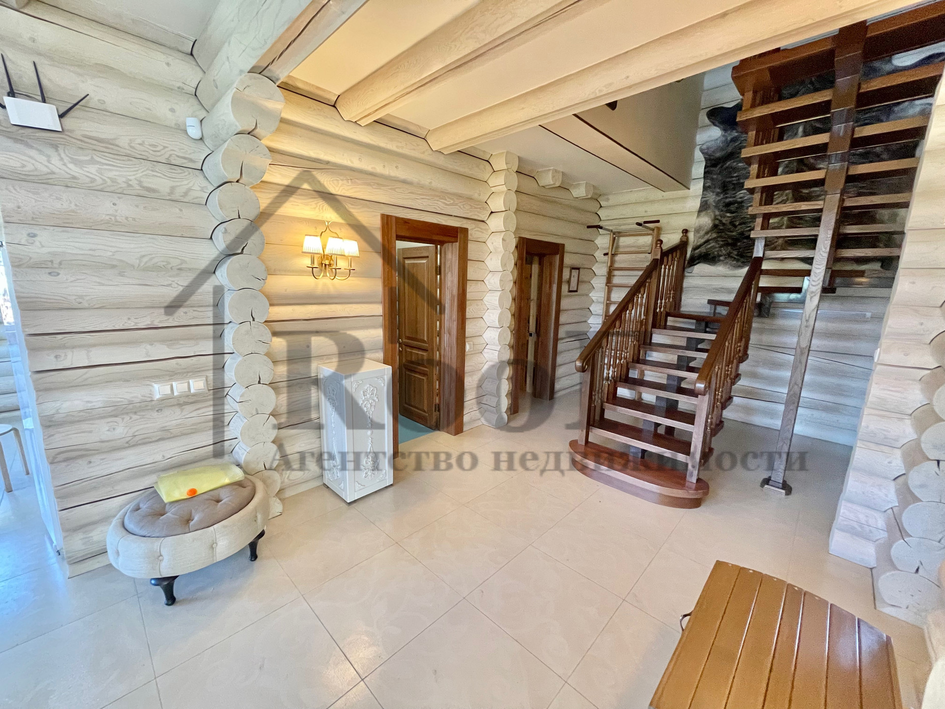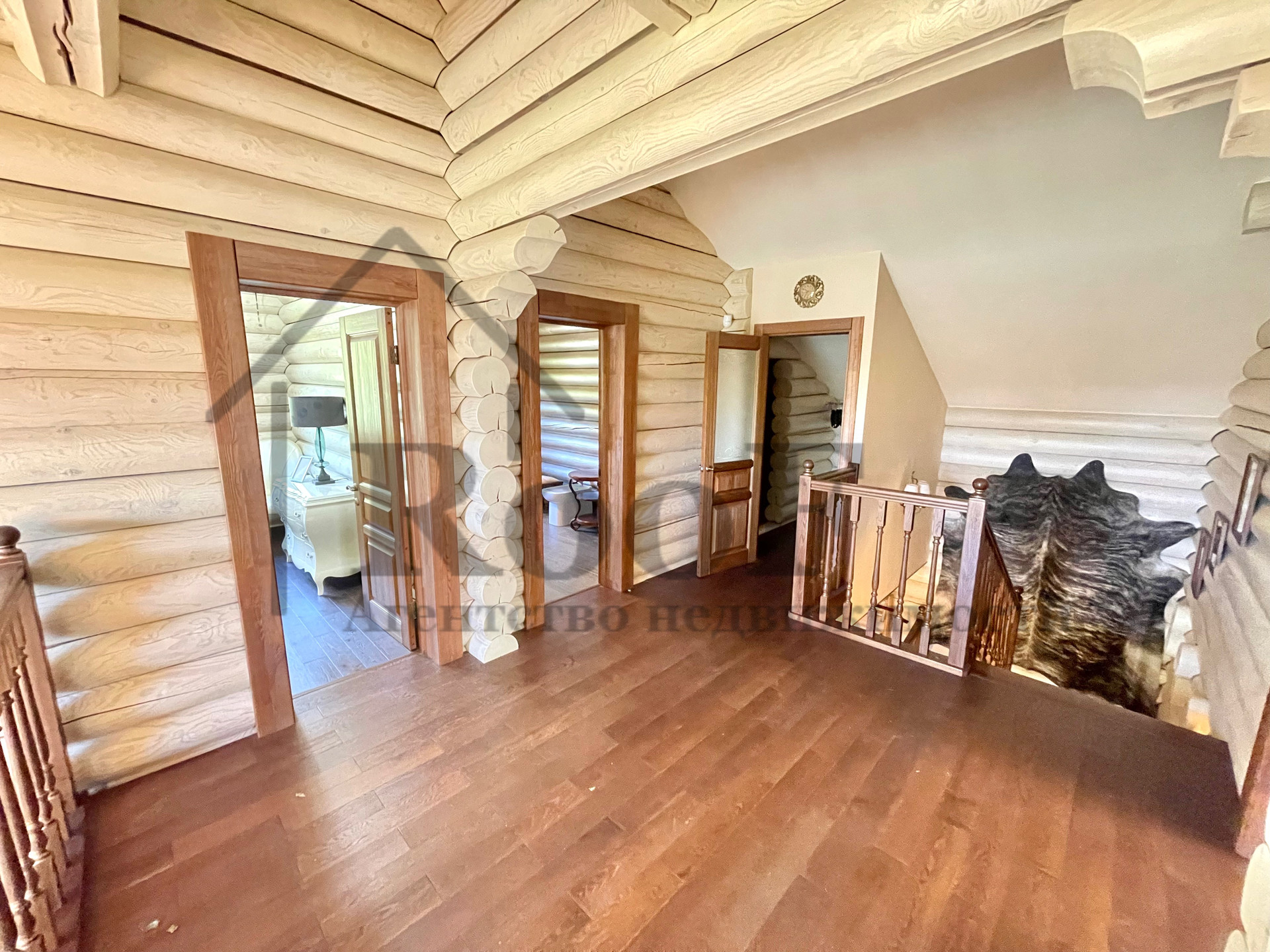 Внутренняя отделка выполнена из природных материалов: на полу всего первого этажа лежит керамогранит с системой теплый пол, межкомнатные двери из цельного массива. К мебели был аналогичный подход. В подарок новым обладателям остаются: кожаные диван и два кресла (без следов износа), спальные гарнитуры в двух спальнях, мебель в детской, шкафы (из массива).