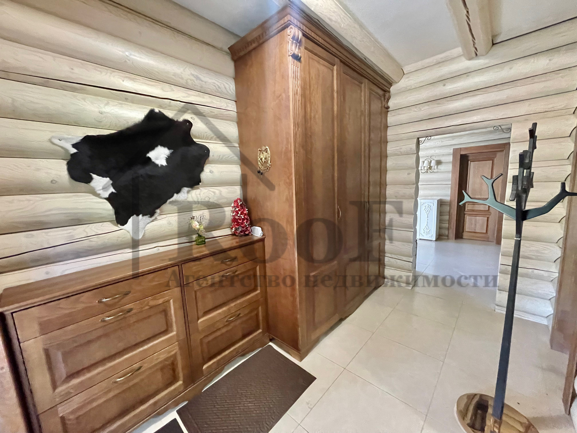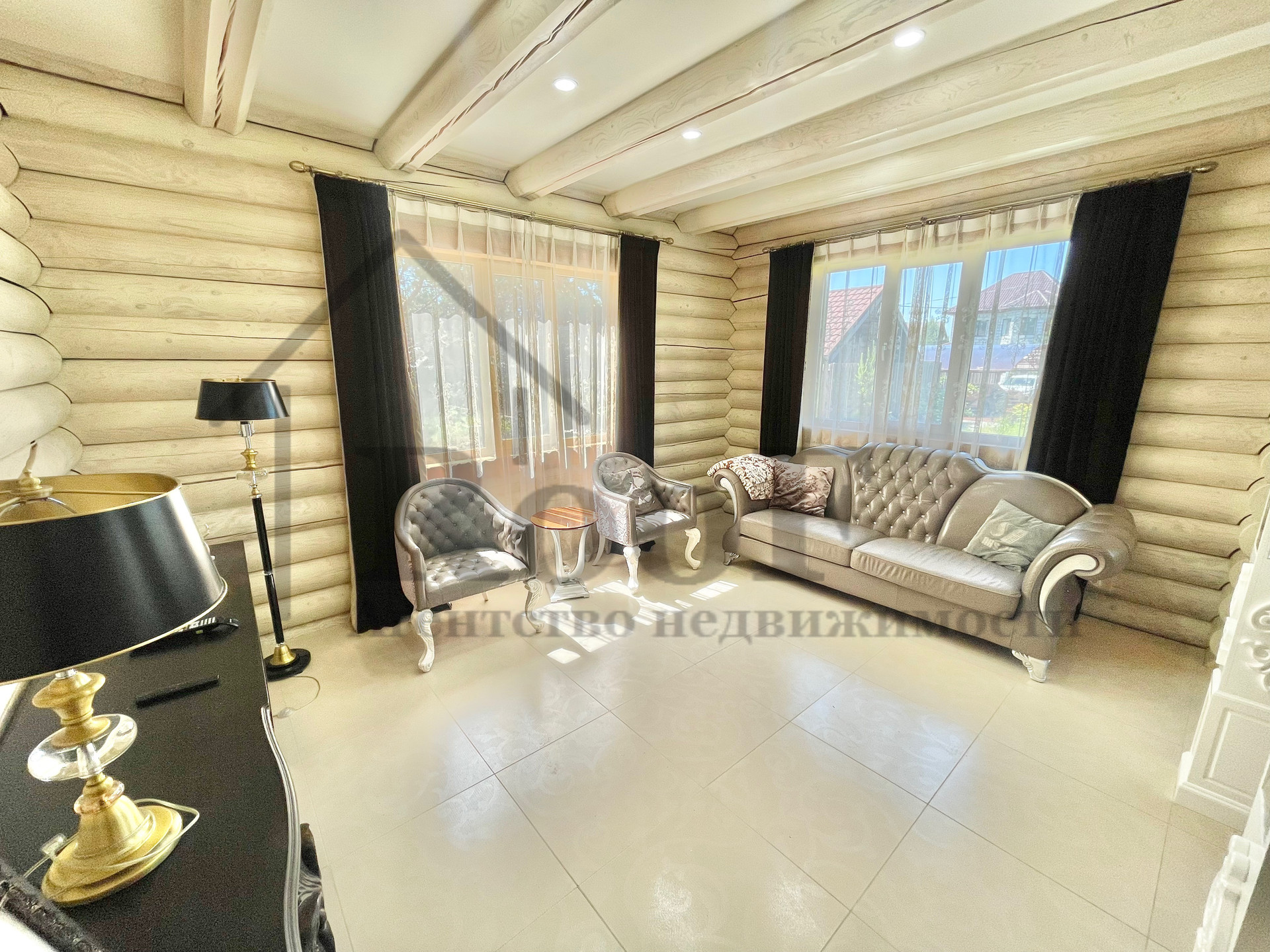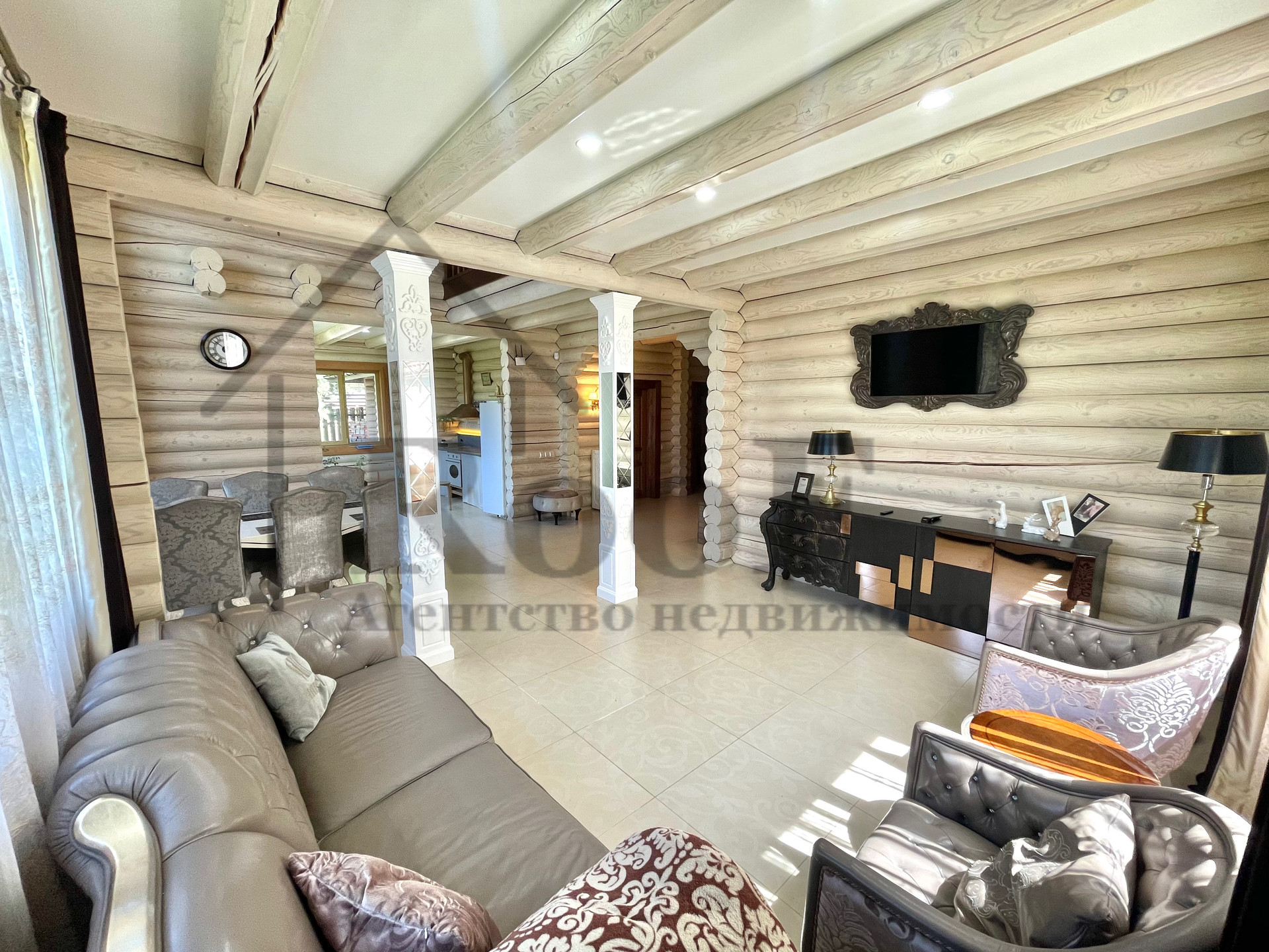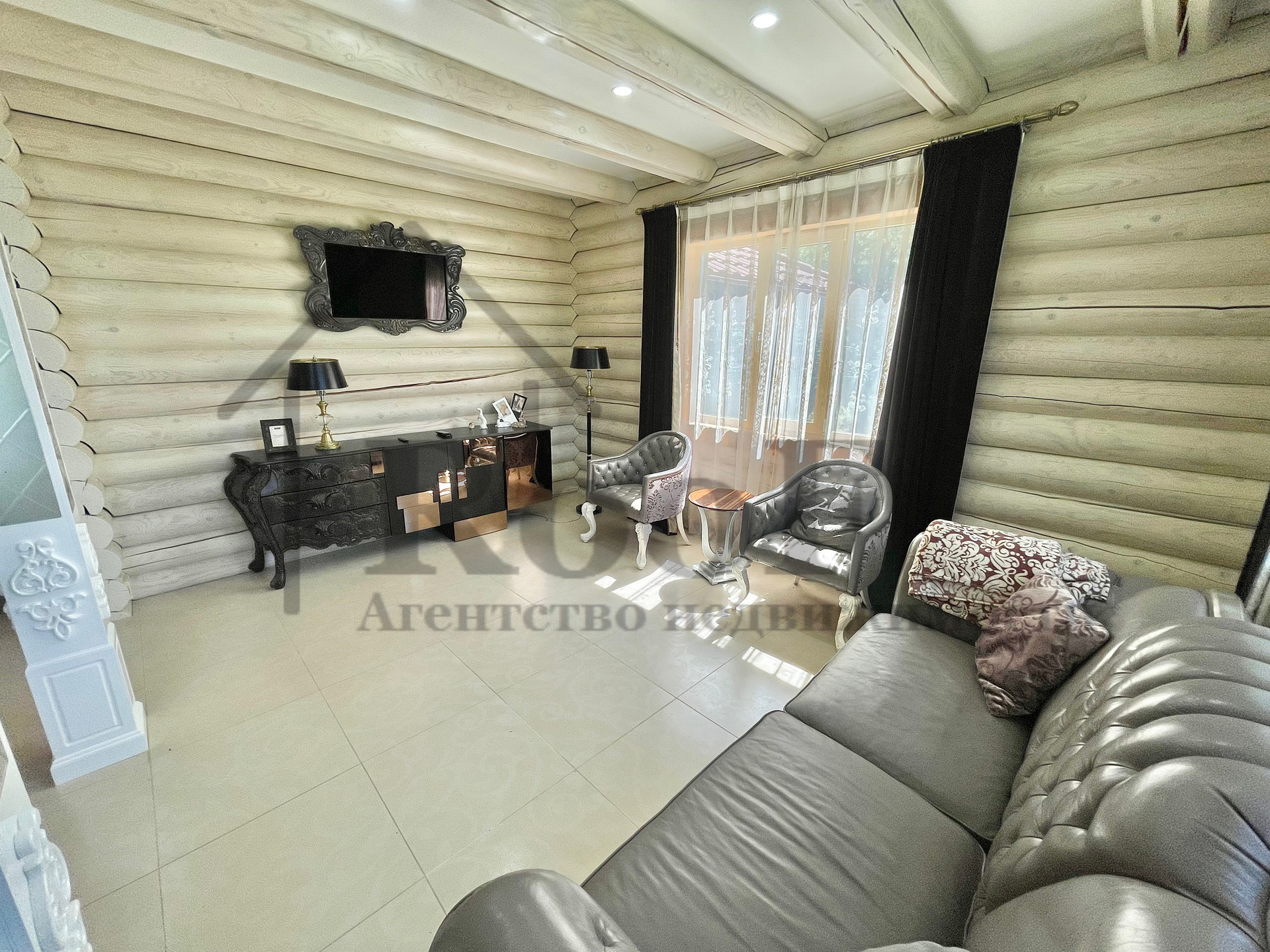 Внутренняя отделка выполнена из природных материалов: на полу всего первого этажа лежит керамогранит с системой теплый пол, межкомнатные двери из цельного массива. К мебели был аналогичный подход. В подарок новым обладателям остаются: кожаные диван и два кресла (без следов износа), спальные гарнитуры в двух спальнях, мебель в детской, шкафы (из массива).