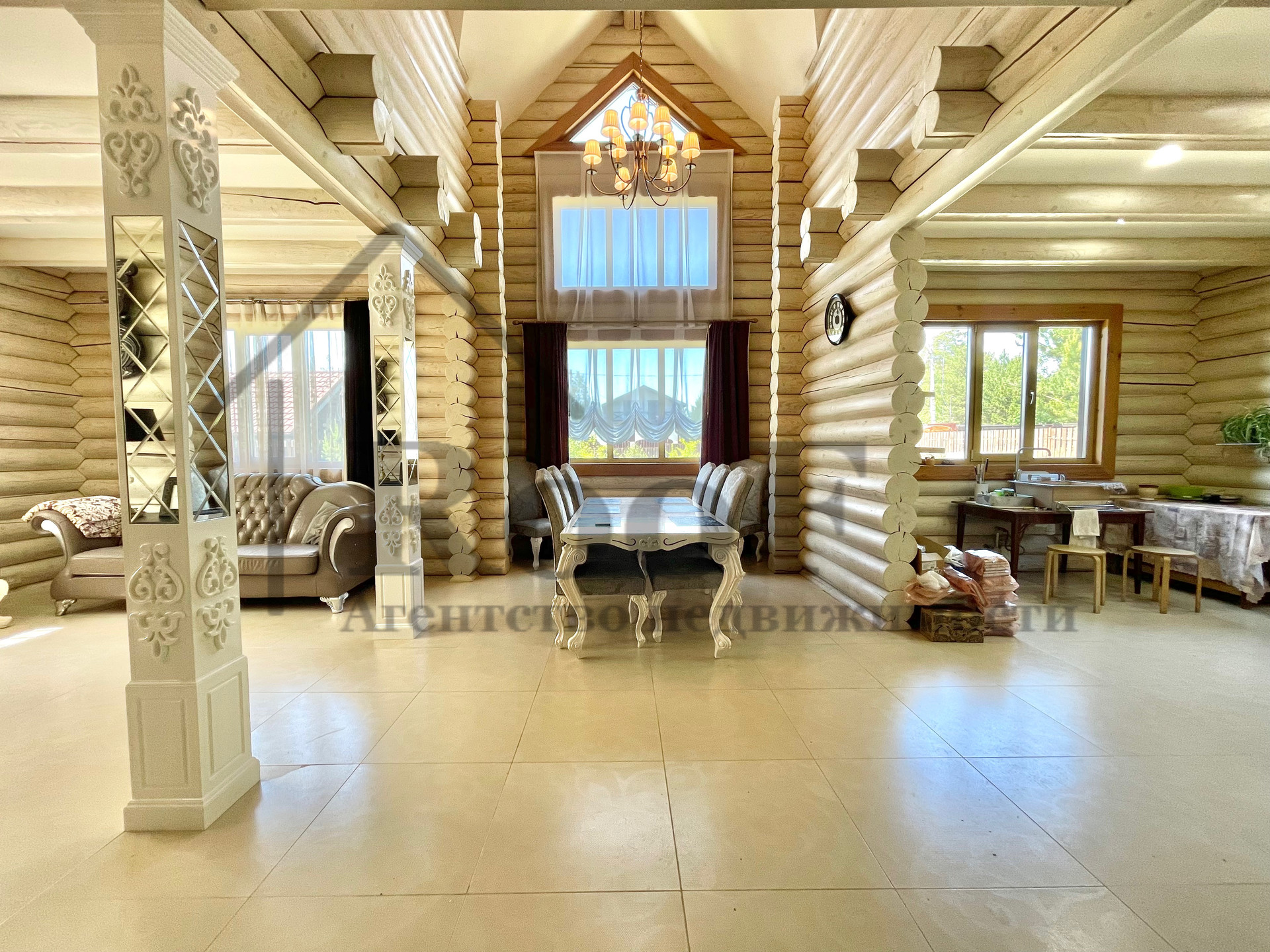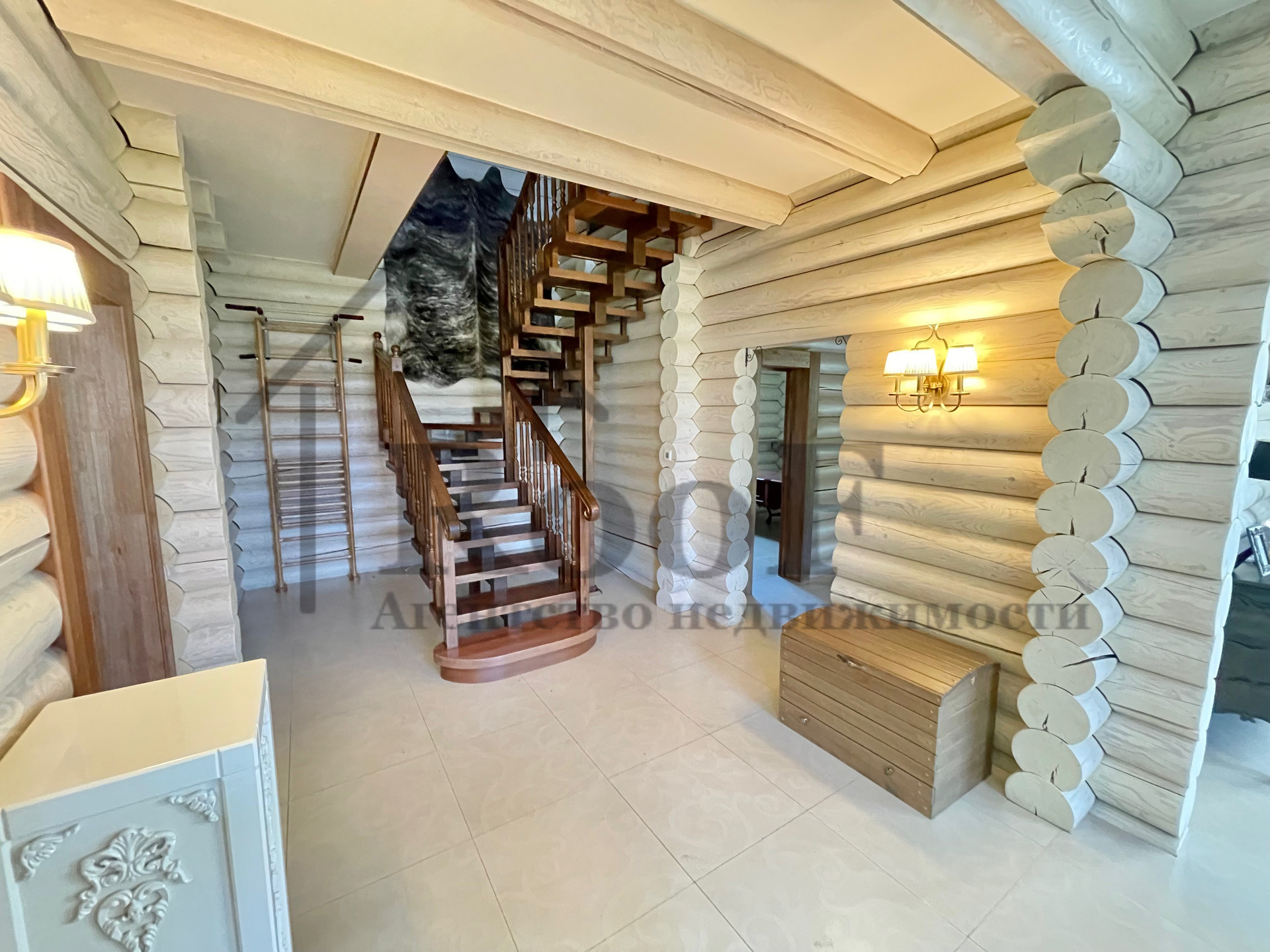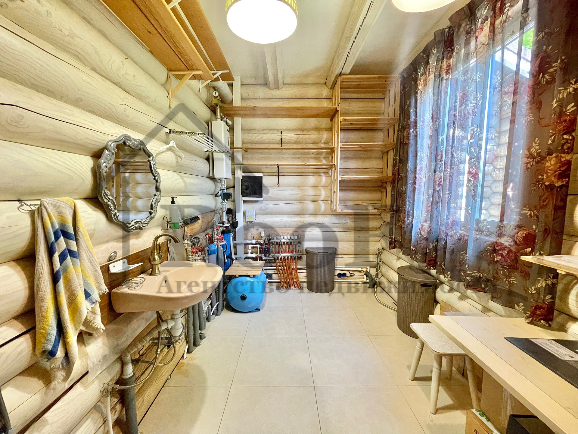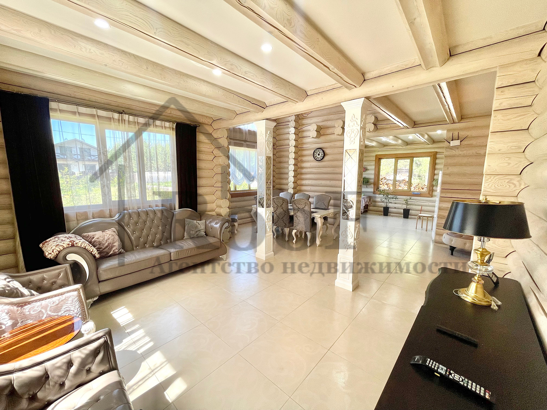 Внутренняя отделка выполнена из природных материалов: на полу всего первого этажа лежит керамогранит с системой теплый пол, межкомнатные двери из цельного массива. К мебели был аналогичный подход. В подарок новым обладателям остаются: кожаные диван и два кресла (без следов износа), спальные гарнитуры в двух спальнях, мебель в детской, шкафы (из массива).