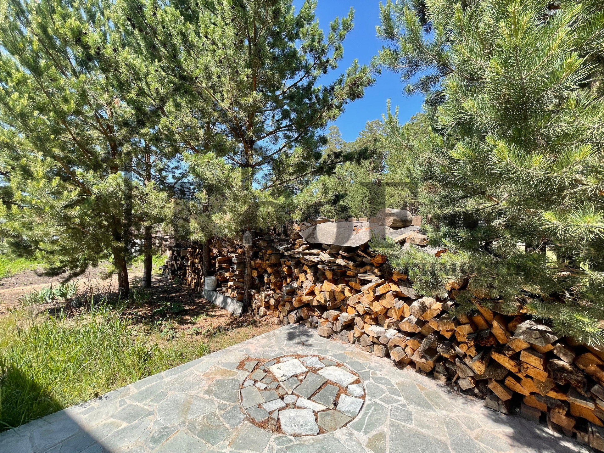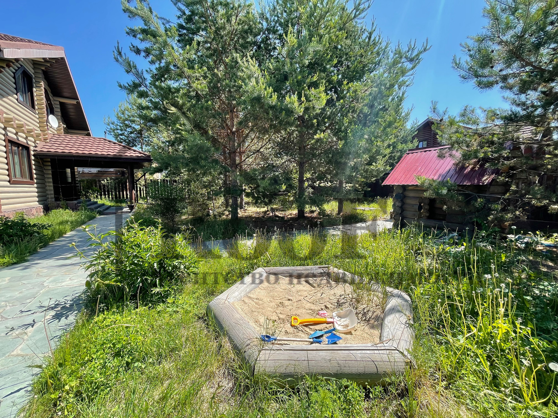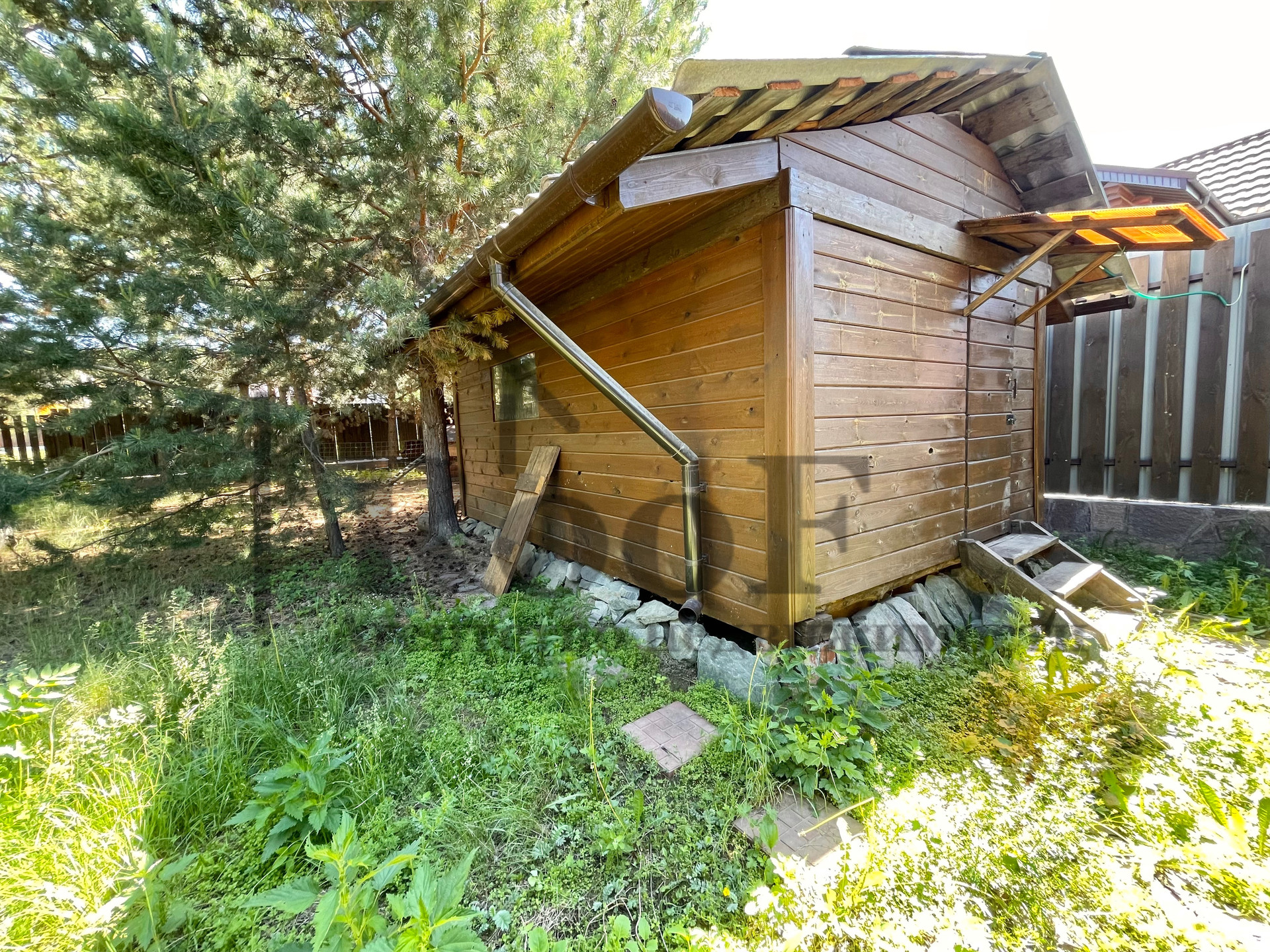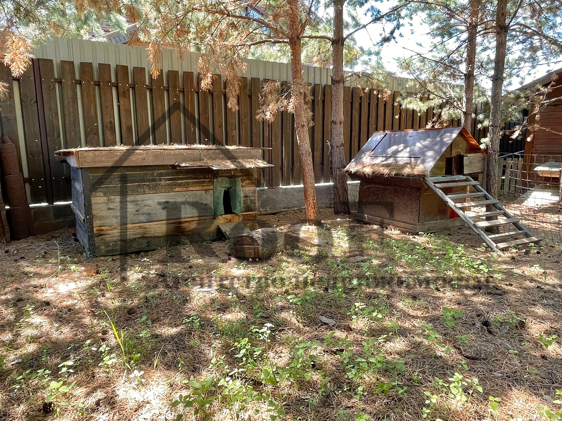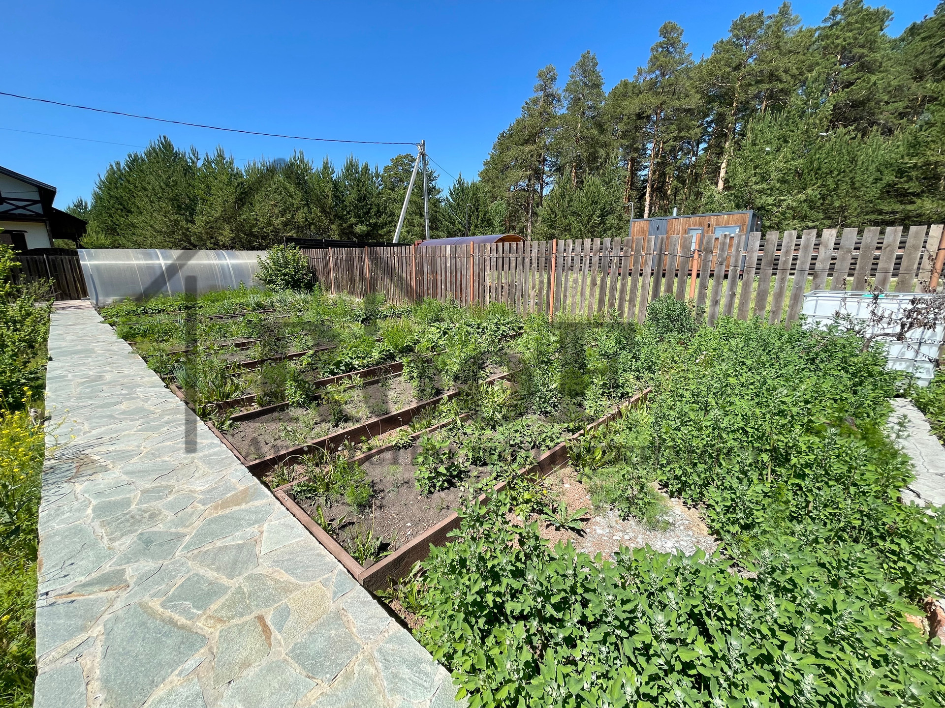 Просторный участок 17 сот., имеет правильную форму, ровный (без уклонов и оврагов). На участке находятся: зона для ведения огородничества с теплицей; при въезде на участок есть место для парковки автомобилей (2 под крышей, 2 без крыши, итого 4 парковочных места); хозяйственная постройка (использовалась для разведения куриц); просторная ЭКО зона с хвойными насаждениями и детской игровой зоной.