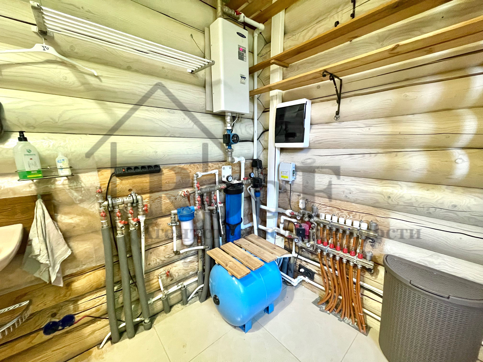 Отопление – электрический котел (по всему полу первого этажа лежит теплый пол)