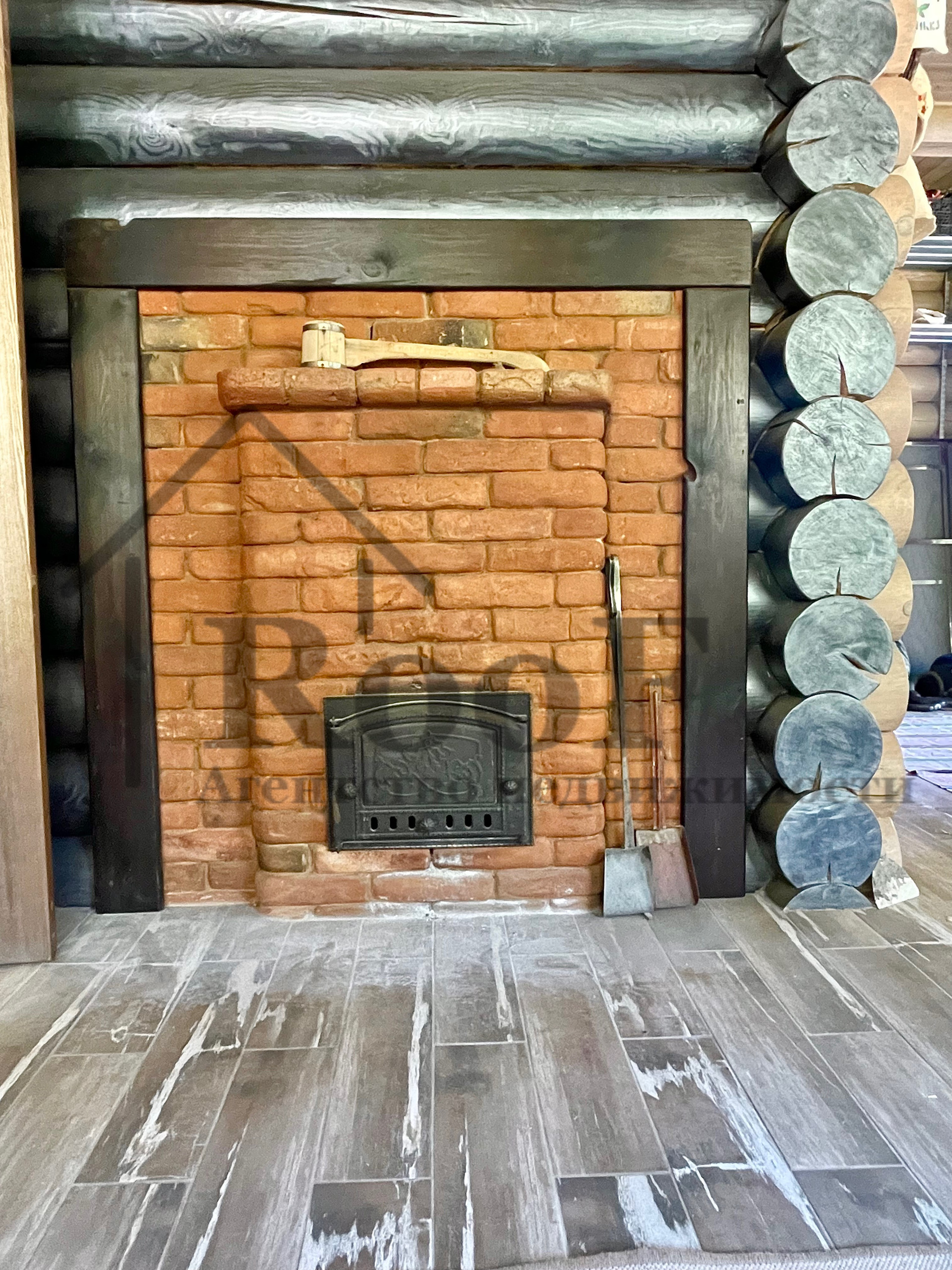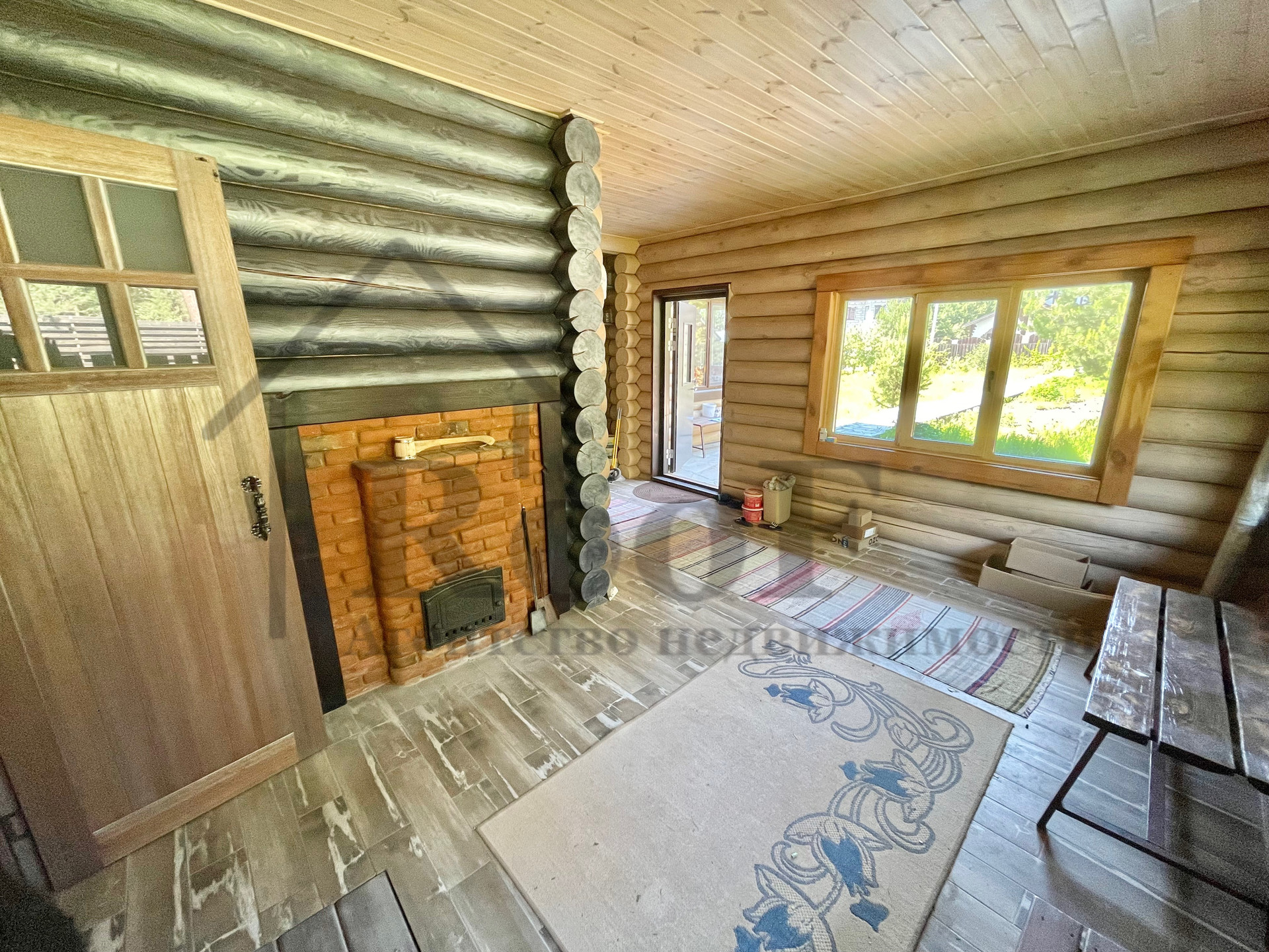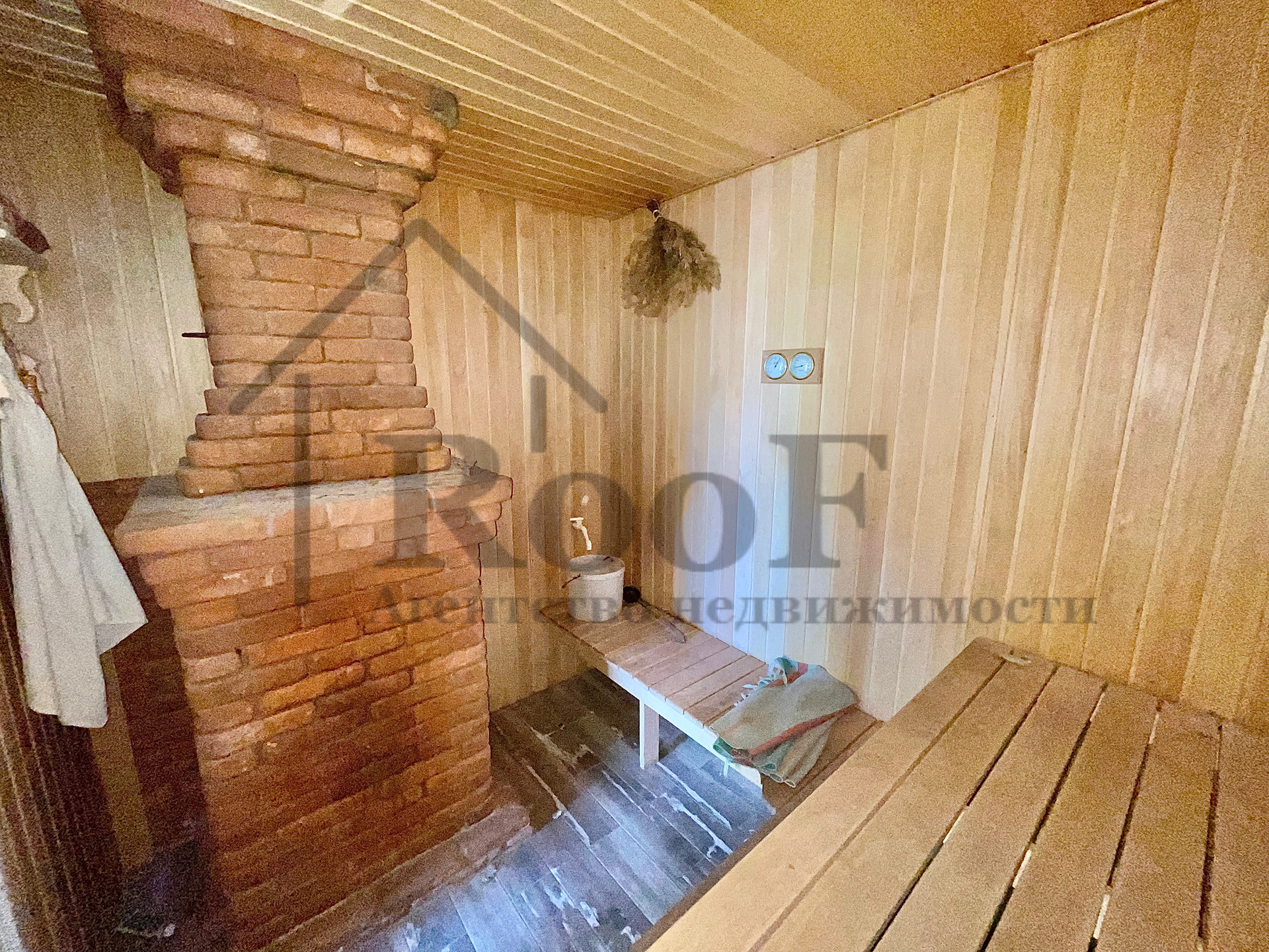 К дому пристроена русская баня с печным отоплением. Печь выложена из кирпича.