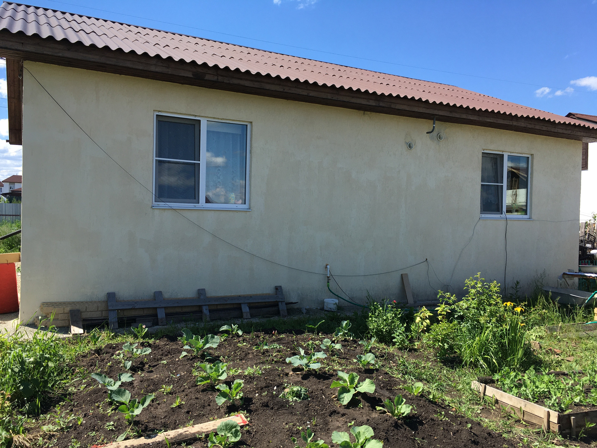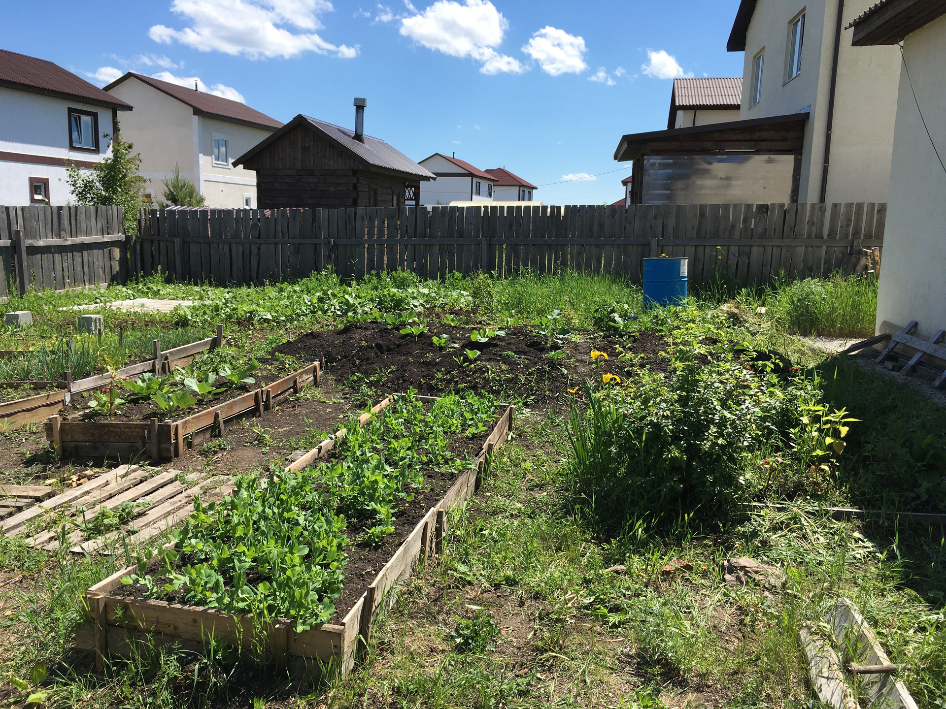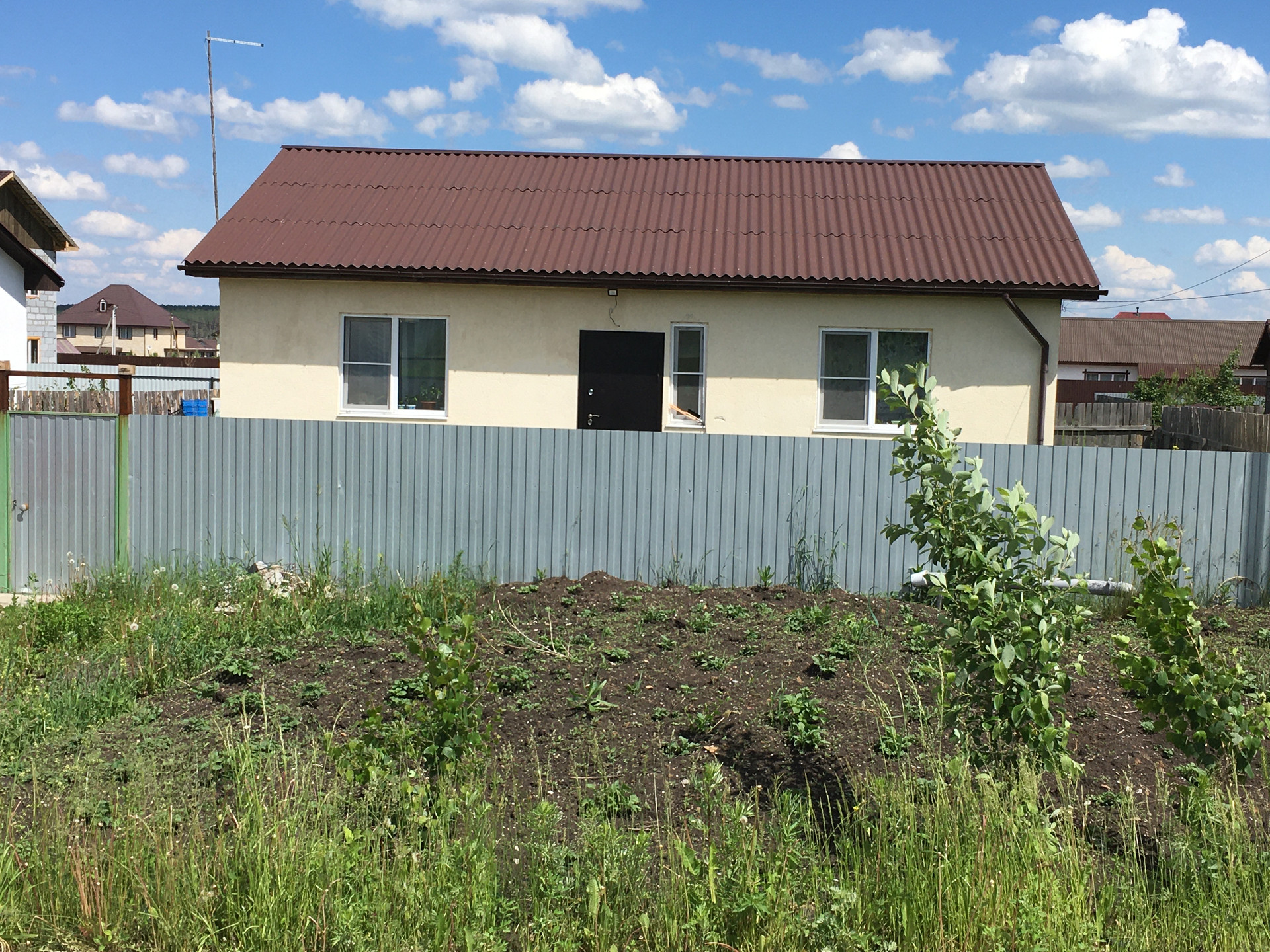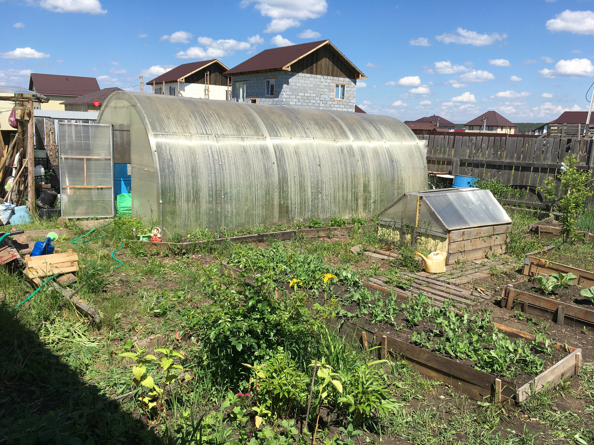 Участок разработан, посажены многолетние плодоносящие кусты и деревья, поставлены две теплицы и обустроен большой зимний погреб.