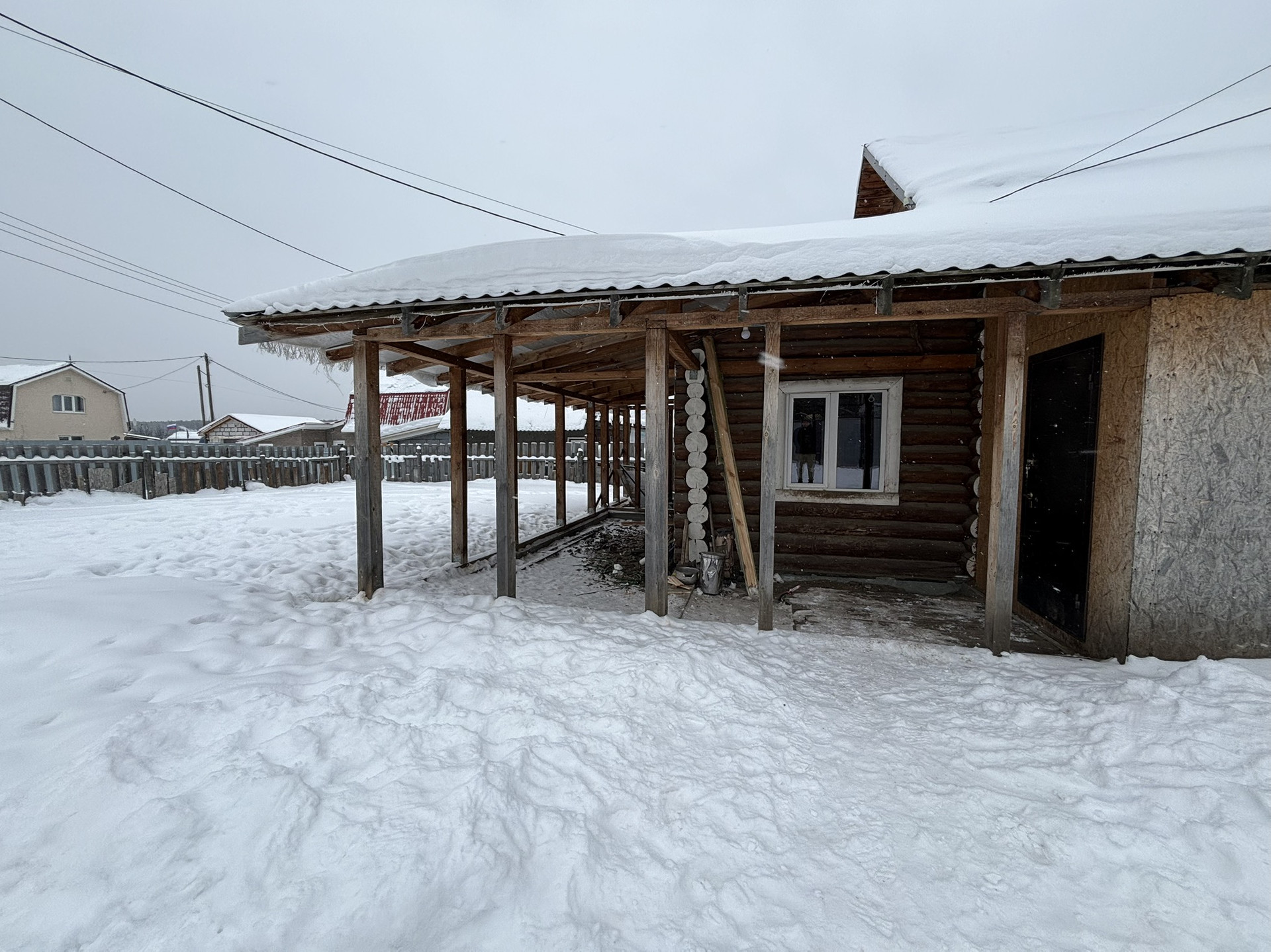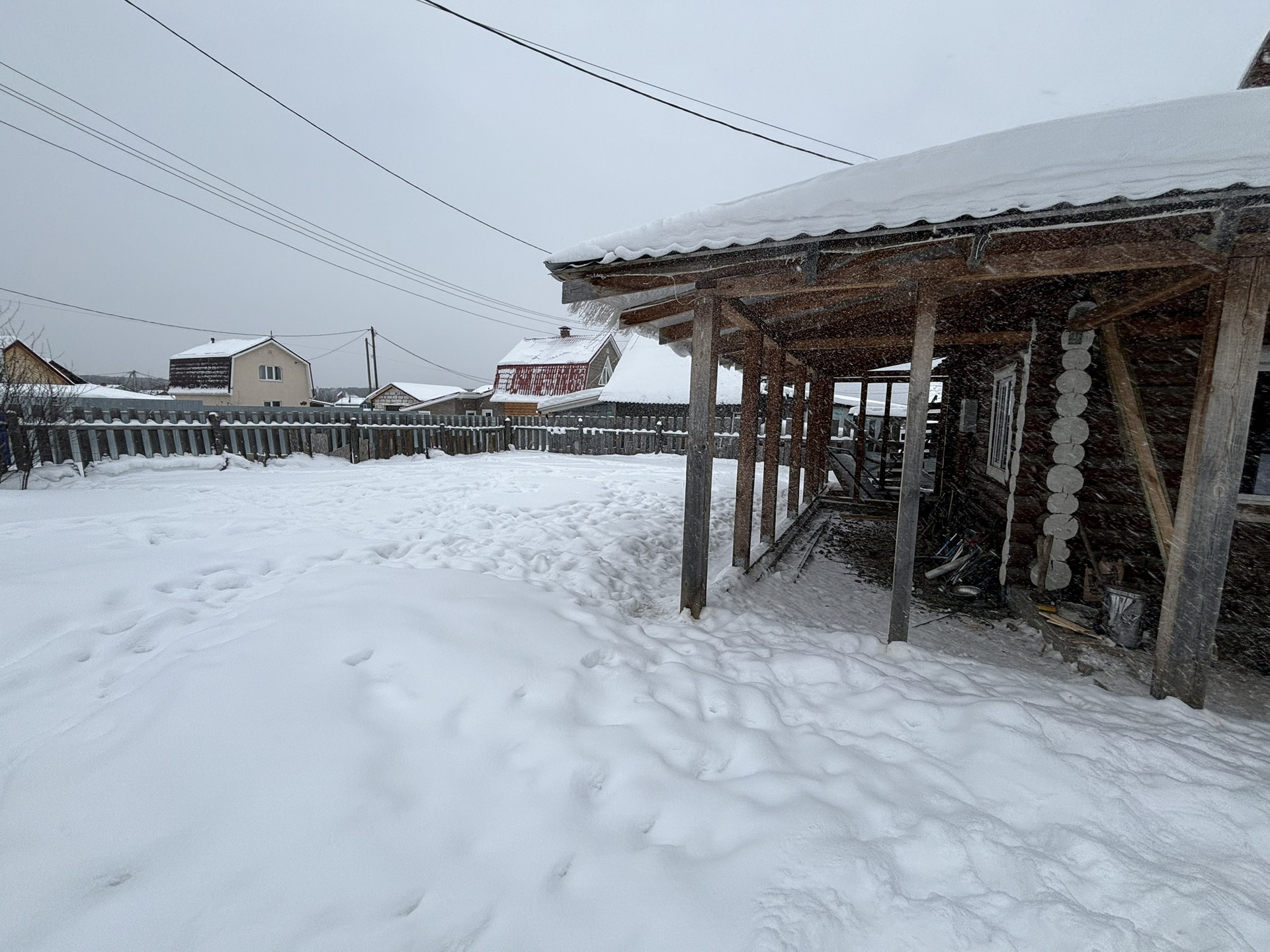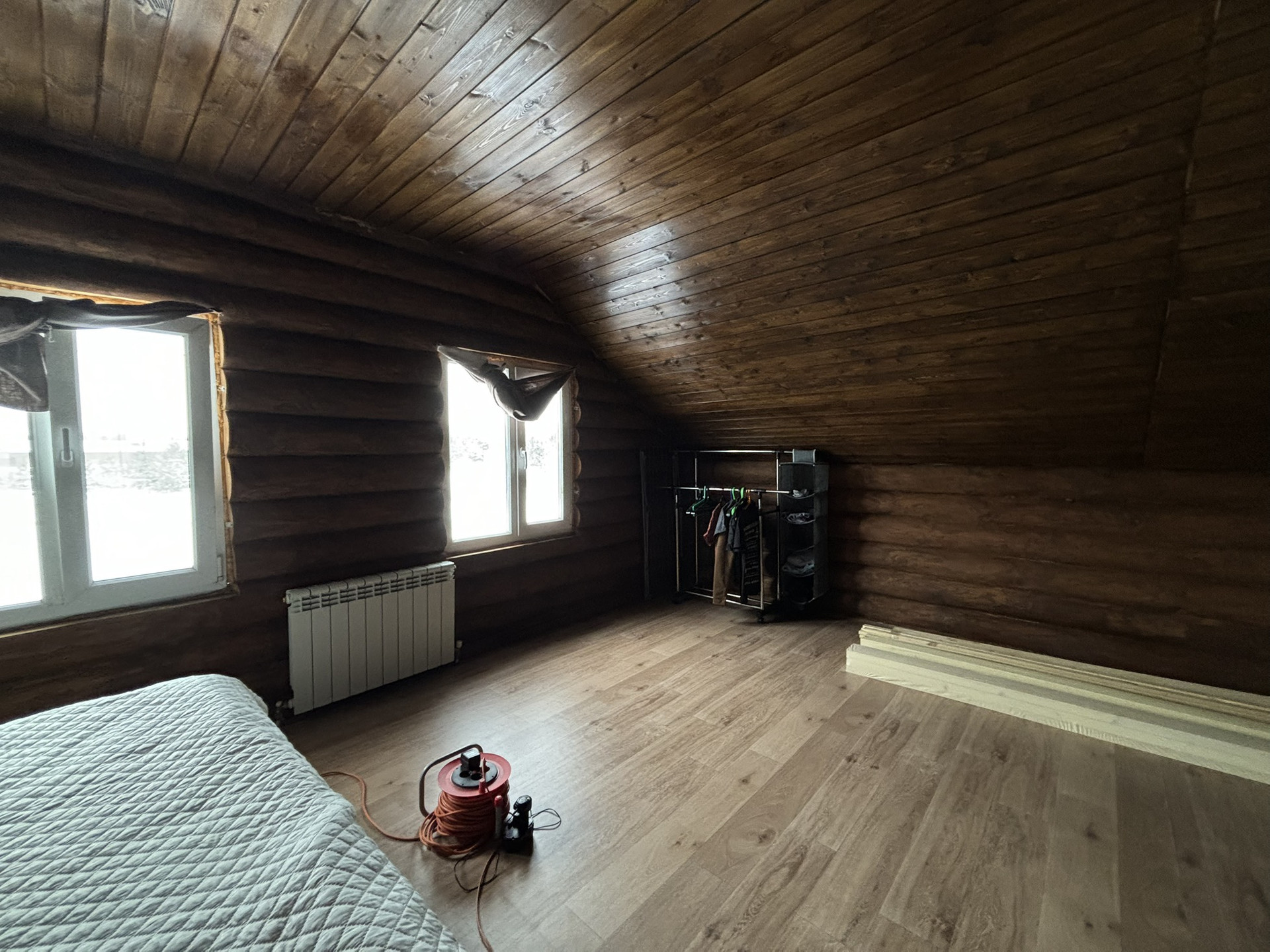 Дом двухэтажный (100 кв.м), стоит на ленточном фундаменте, стены - рубленное дерево. Крыша - металлочерепица.