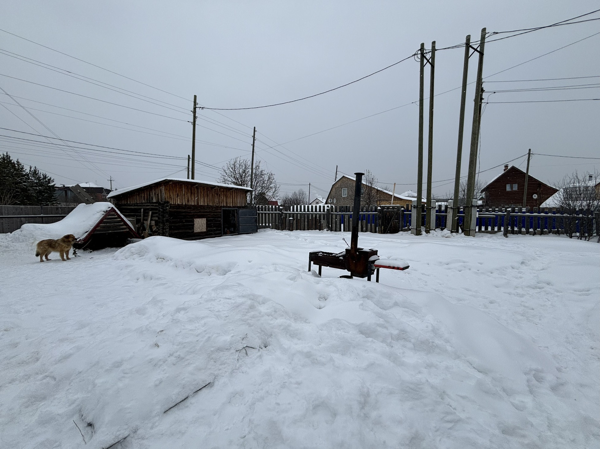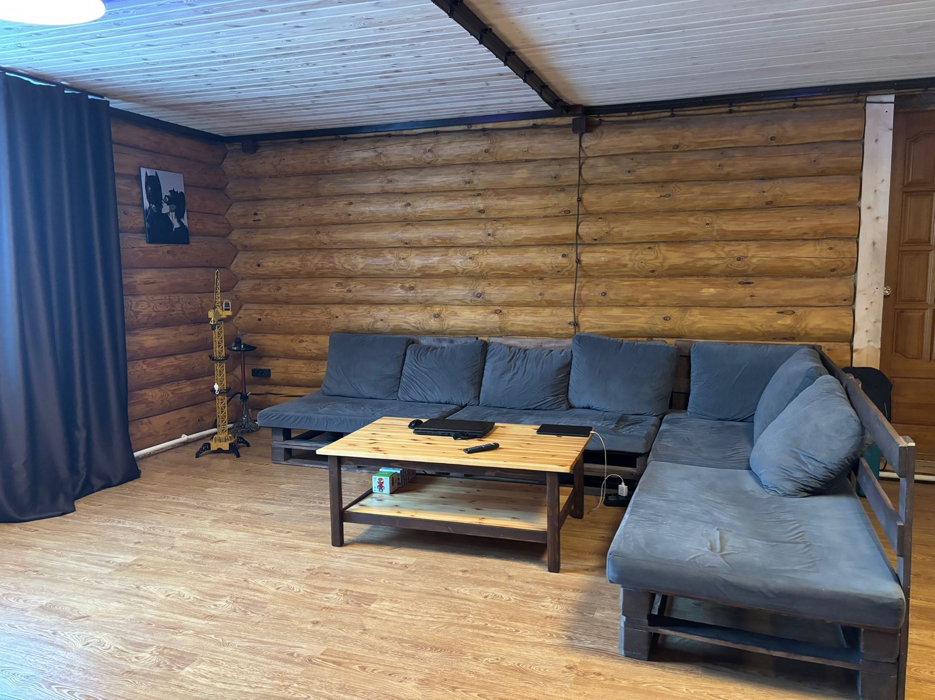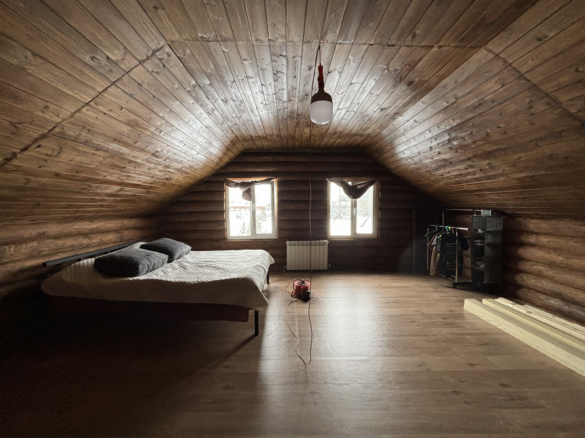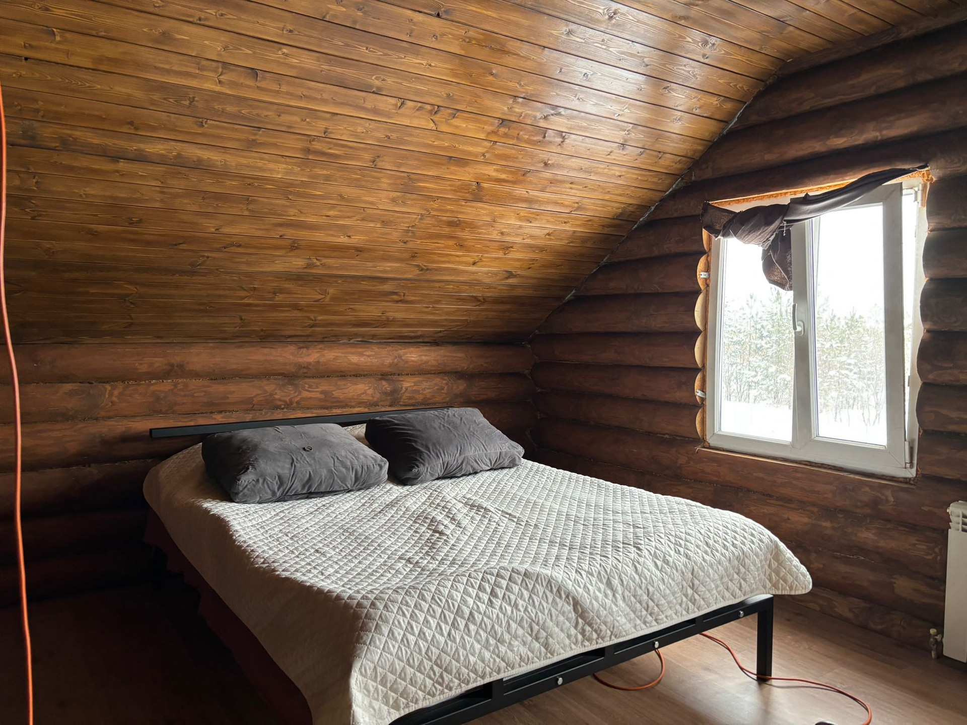 Дом двухэтажный (100 кв.м), стоит на ленточном фундаменте, стены - рубленное дерево. Крыша - металлочерепица.