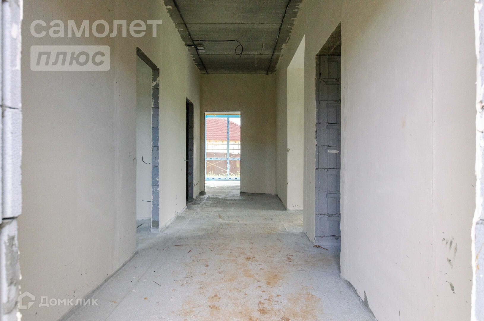 - Центральный вход в дом, длинный коридор из которого можно попасть практически во все комнаты и помещения ( в просторную , светлую кухню-гостиную 45.2 кв м, две изолированные спальни 16.4 и 23.4 кв.м., котельную и 1 санузел).