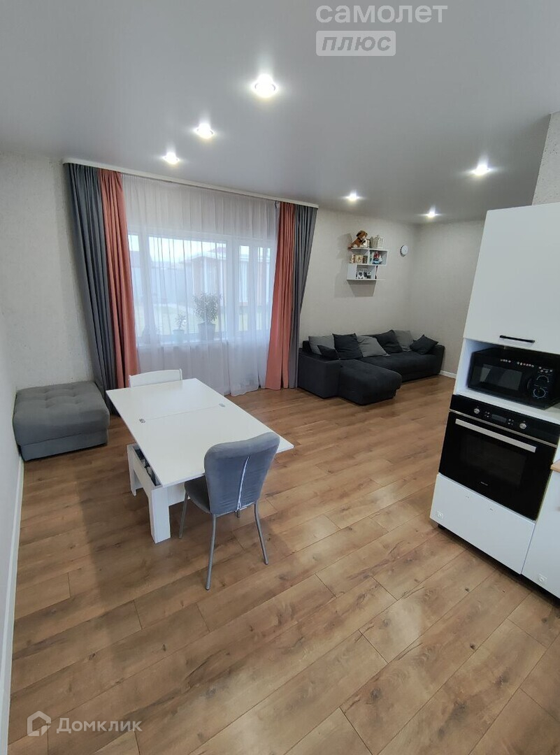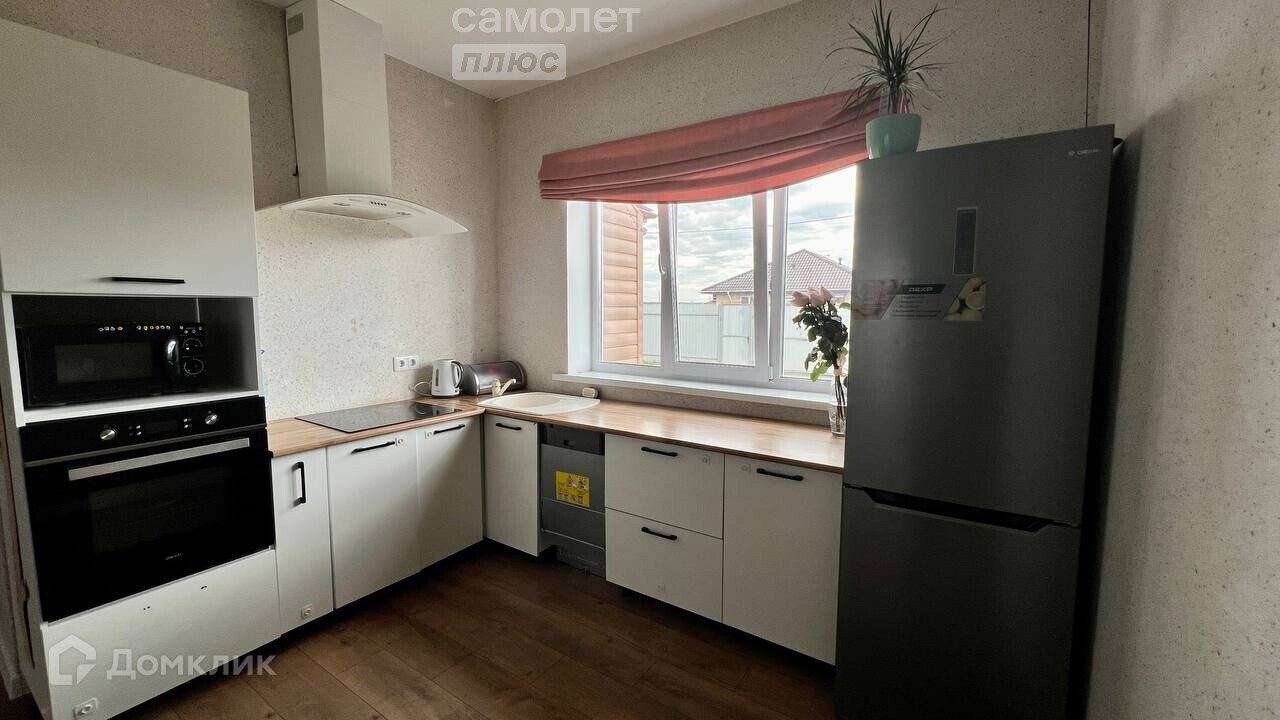 - ДОМ ГОТОВ ПОД КЛЮЧ: ламинат в комнатах и гостиной, керамическая плитка в коридоре и котельной, кафель в ванной комнате, обои, натяжные потолки и двери. В доме остается кухонный гарнитур, варочная поверхность, духовой шкаф, вытяжка, стиральная машина, кровать в гостевой спальне.