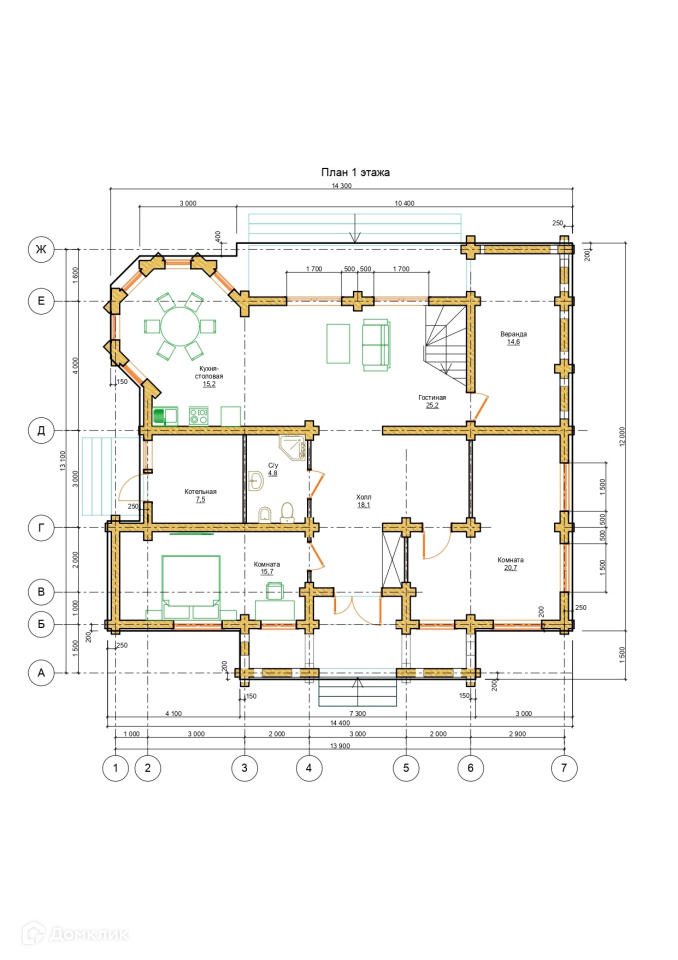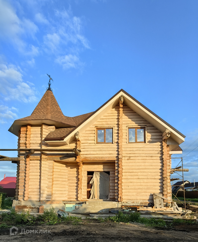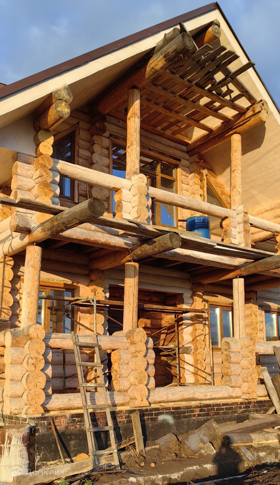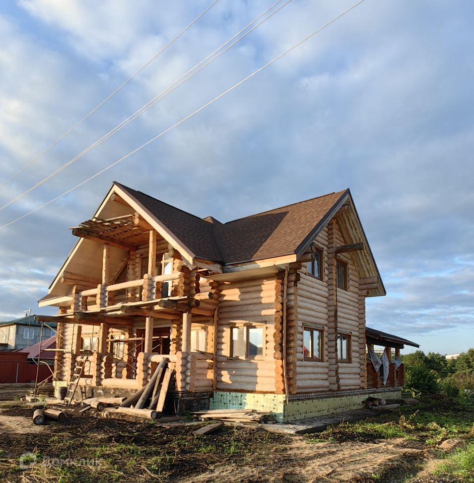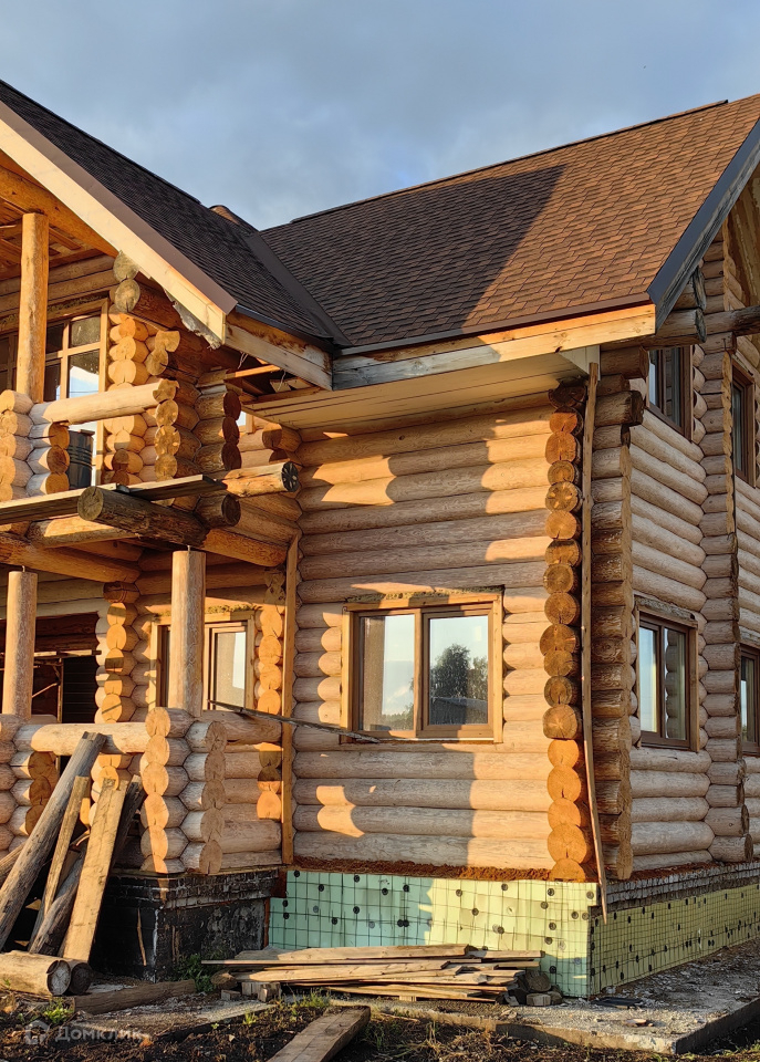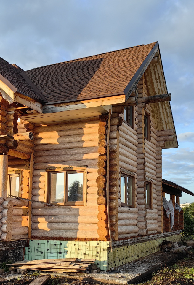 Дом, построенный из рубленого бревна, сосна, является эхом прошлого абсолютно всех современных построек. Стены его состоят из бревен, которые обтесаны вручную. В данной технологии используется исключительно ручной труд. Материал имеет одинаковый диаметр по всей длине от 280 мм. до 360 мм. Находится на берегу Исети