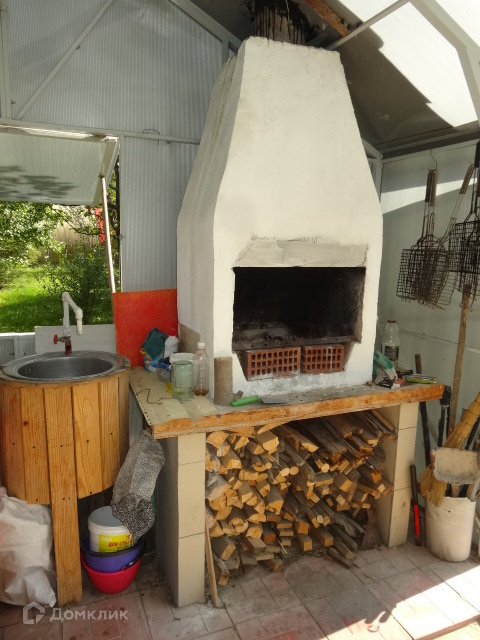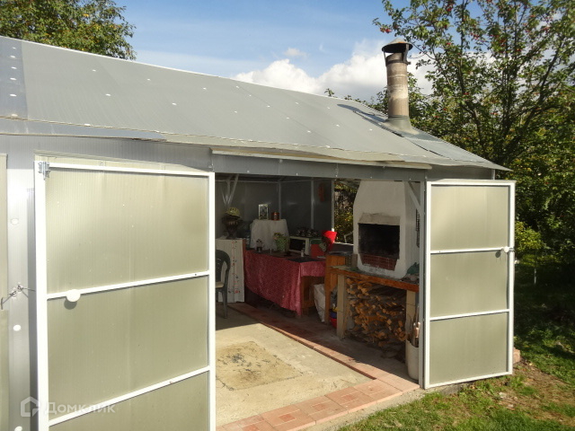 крытый павильон с русской печкой, детский уголок и теплица.