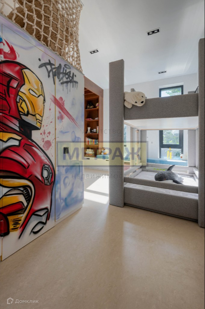 1-й этаж: холл, кухня-столовая+гостинная с действующим камином и выходом на террасу, спальня с личной ванной комнатой, гардеробная с постирочной, детская комната, совмещенный душевая комната, кабинет, комната для гостей, кинозал с библиотекой, гостевой санузел, хозяйственный блок.