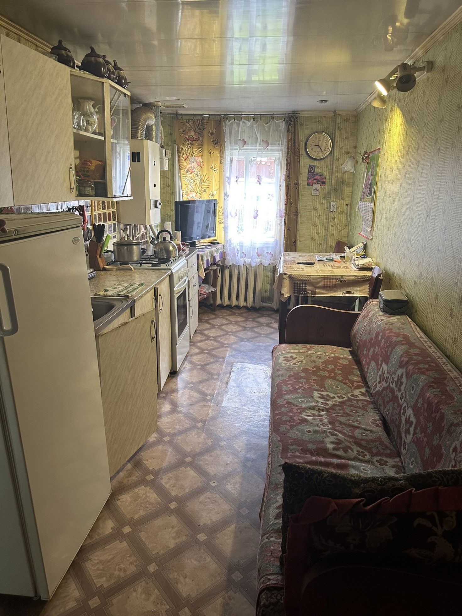 Отличный добротный дом, состояние пригодное для проживания, центральный водопровод, отопление газовый котел,выгребная яма, хороший ровный участок
