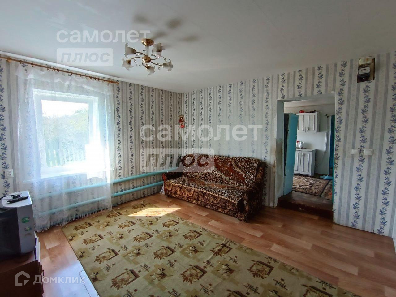 -Дом бревенчатый, жилой, площадью 96,6 кв метров, состояние хорошее. Отделка - сайдинг.
