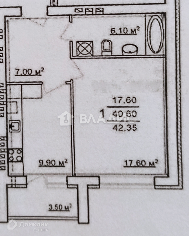 Общая площадь 42.35 м2
