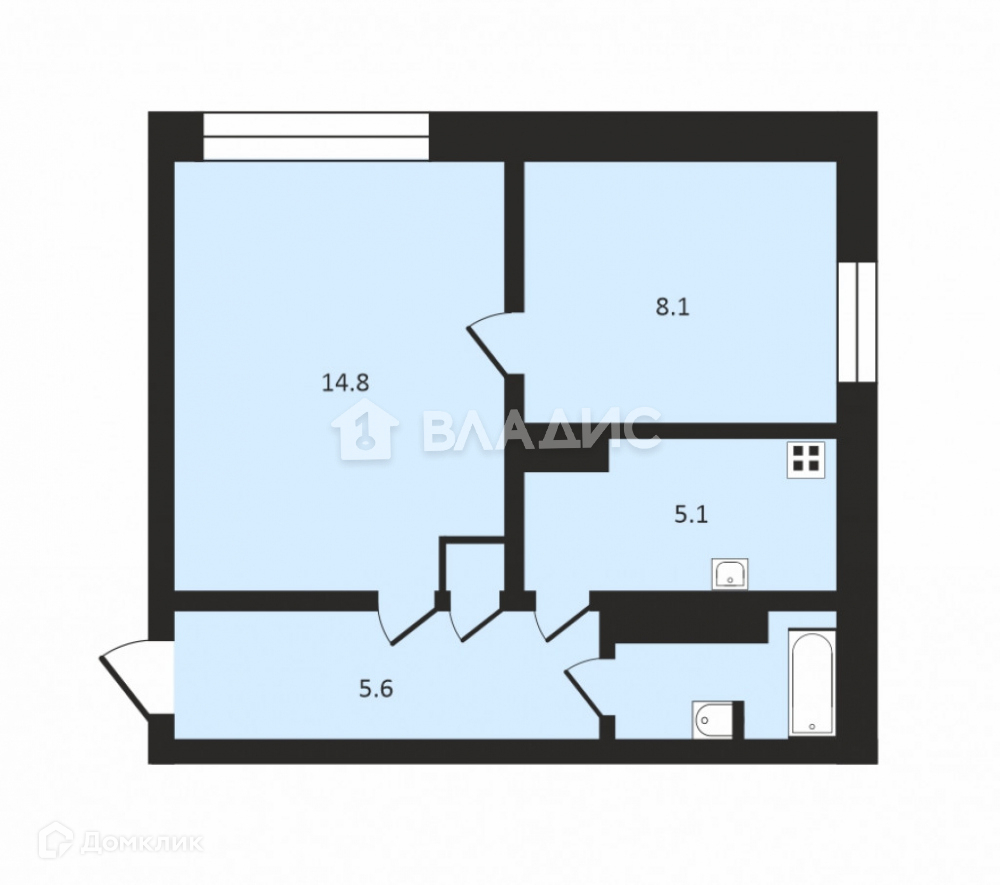 Жилая площадь 22.9 м2