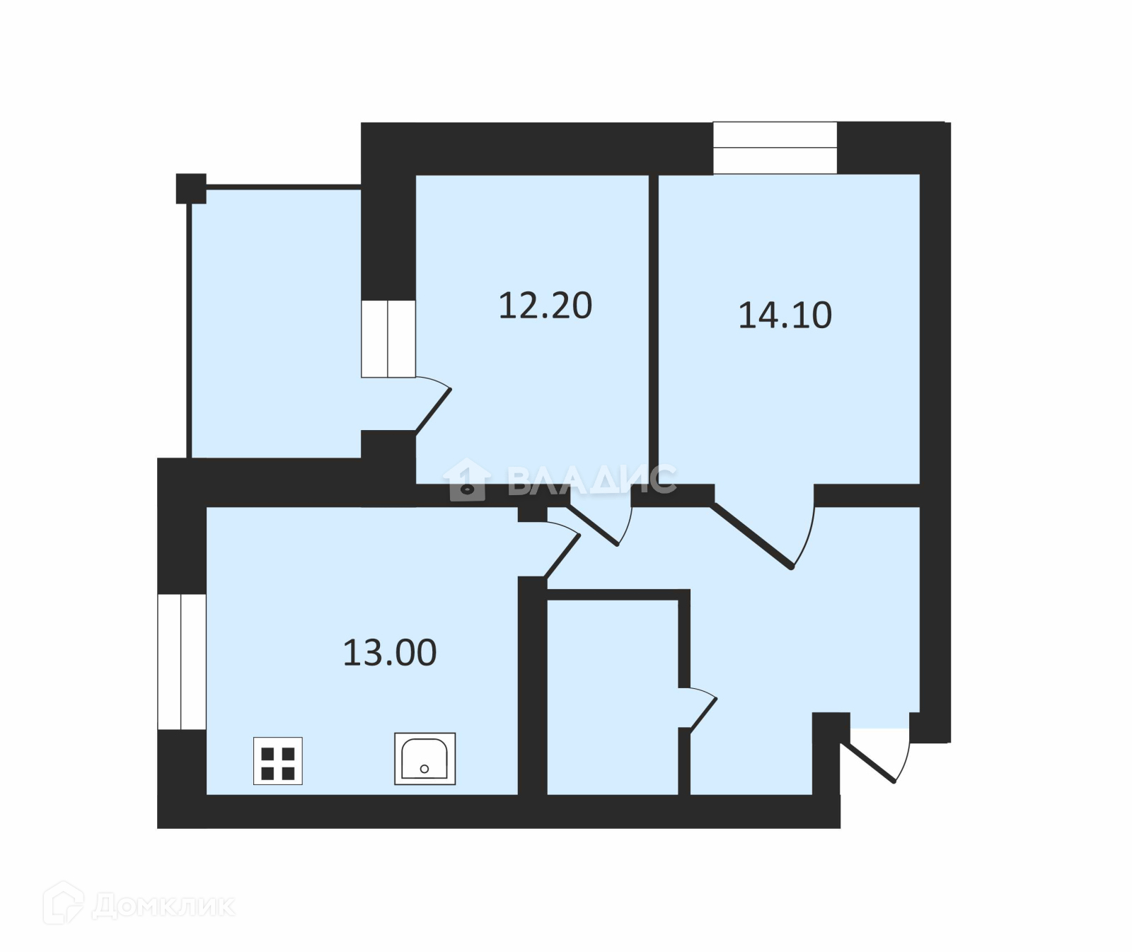 Жилая площадь 26.3 м2