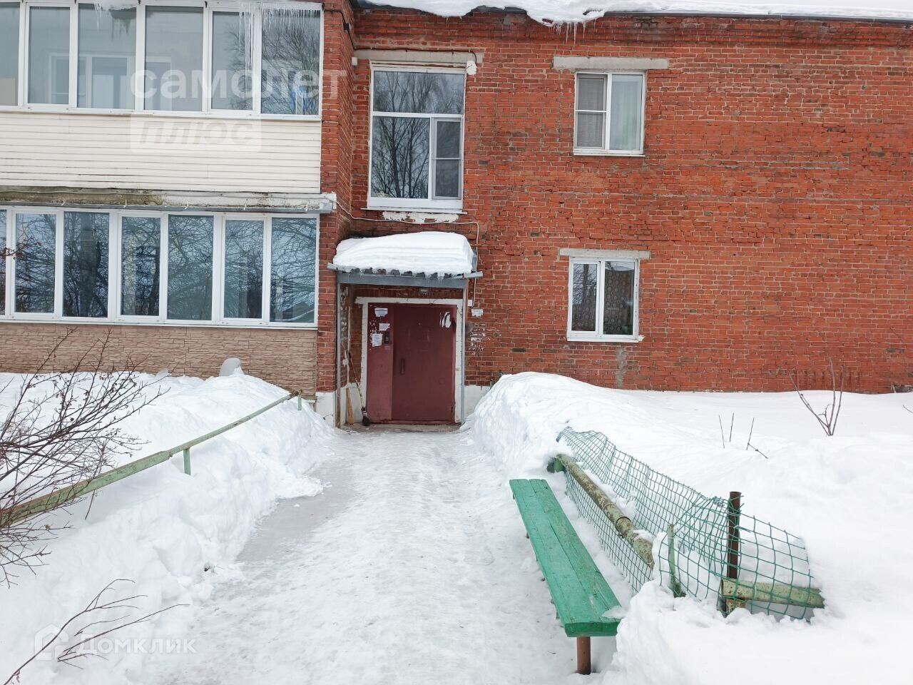 Квартира расположена на первом этаже двухэтажного кирпичного дома .