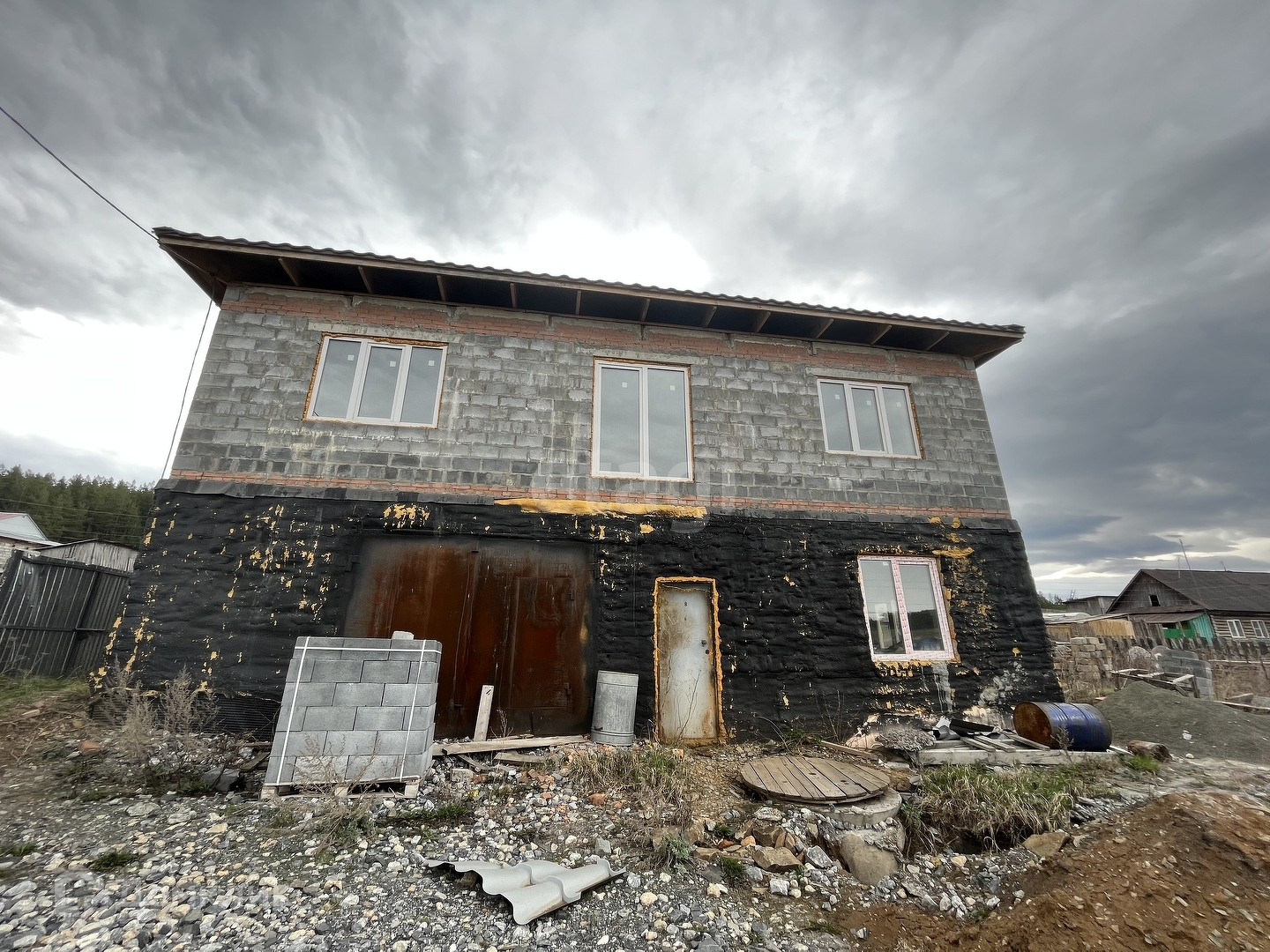 ПОДХОДИТ ПОД СЕЛЬСКУЮ ИПОТЕКУ с самой низкой ставкой ! Продается недостроенный коттедж в поселке Большая Запань общей площадью 244 кв.м.. Земельный участок 14 соток. Разработан под огород. По самой центральной улице. ул. Дорожная. Двухэтажный, стены из шлакоблока. Первый этаж утеплен. В доме запланировано два теплых гаража. Крыша сделана из гибкой черепицы. Дом просторный, сделан из качественных материалов. Новые евроокна и двери. На участке есть скважина и сливные ямы. Есть баня. Обшита металлосайдинг под бревно.